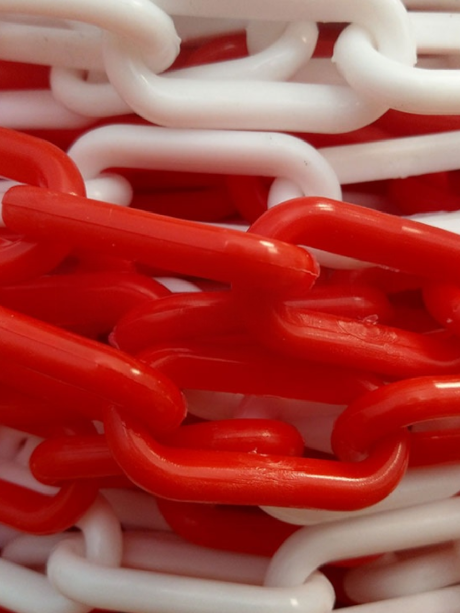 Красно-белая пластиковая цепь — практичный и хорошо заметный элемент для организации временных ограждений и зонирования пространства. Она сочетает достаточную прочность с малым весом, благодаря чему удобна в использовании и транспортировке.