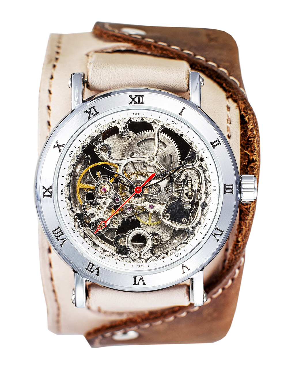 Мужские наручные механические часы с автоподзаводом от YOURTIME, ремешок изнатуральной кожи. Индивидуальность и стиль. Имидж и красота. Качество и мода. Уникальный дизайн, наручные часы скелетоны на широком ремешке или браслете вызывают интерес и сразу обращают на себя внимание. Механические наручные часы - тренд этого сезона.