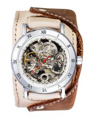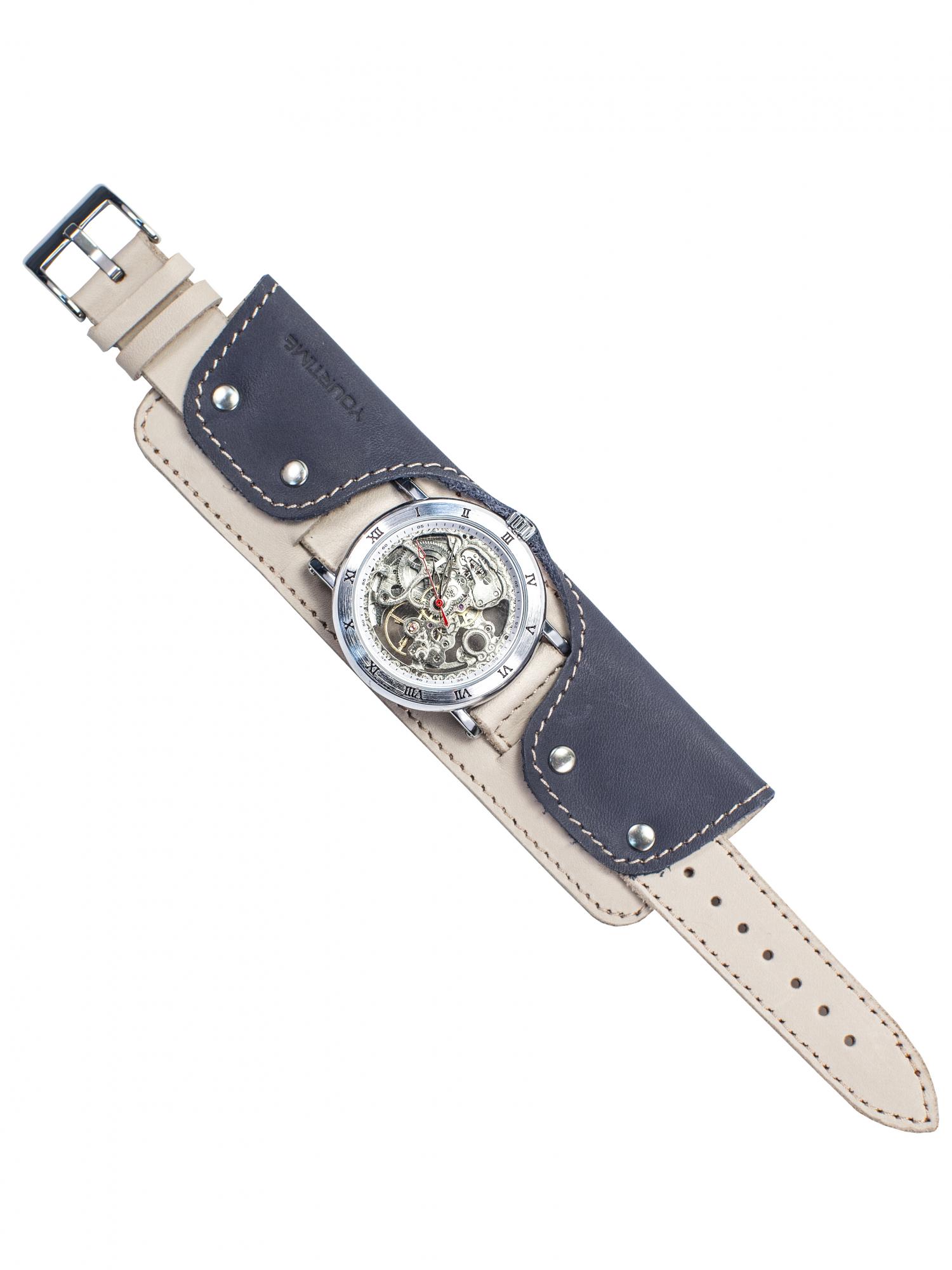 Женские наручные механические часы с автоподзаводом от YOURTIME, ремешок изнатуральной кожи. Индивидуальность и стиль. Имидж и красота. Качество и мода. Уникальный дизайн, наручные часы скелетоны на широком ремешке или браслете вызывают интерес и сразу обращают на себя внимание. Механические наручные часы - тренд этого сезона.