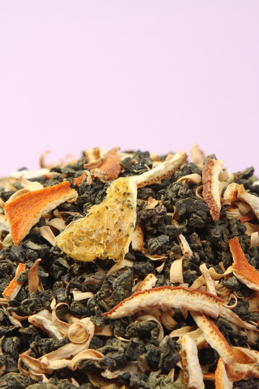 Состав: ароматизатор натуральный, цедра апельсина, лепестки апельсинового дерева, Улун зеленый, сегмент апельсина.