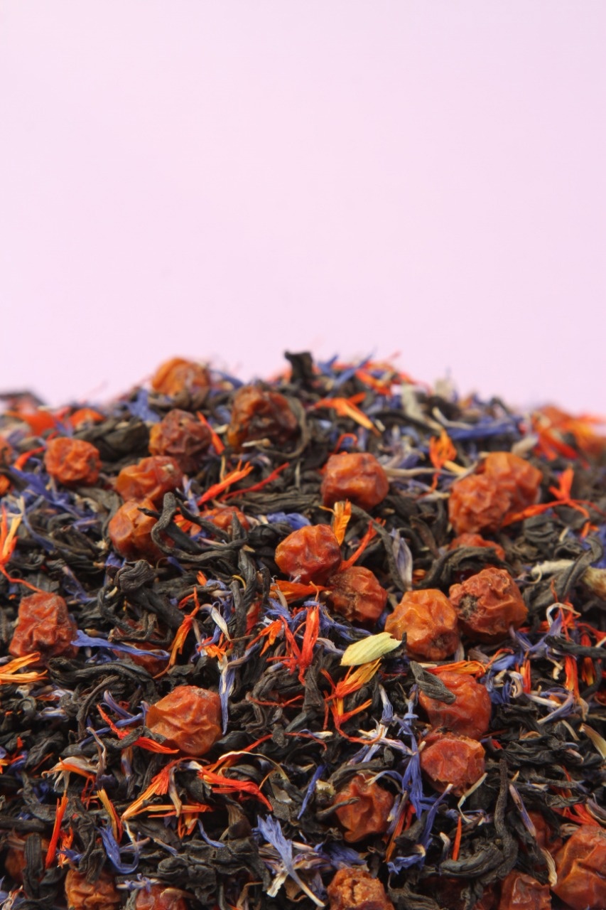 Состав чая "Граф Орлов": василёк, сафлор, калина (рябина), боярышник, чай чёрный, ассам.