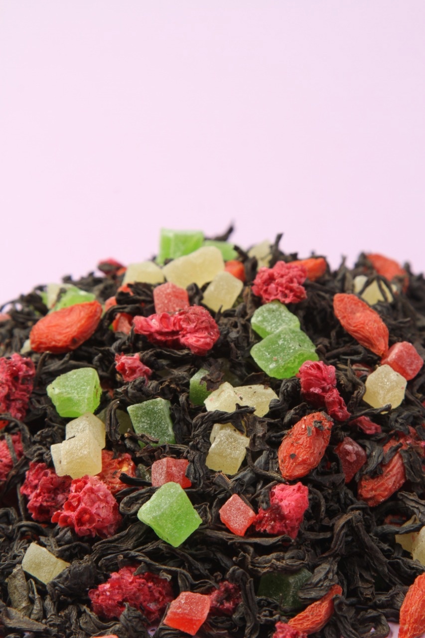 Состав: годжи ягоды, ананас сушеный, ароматизатор натуральный, кусочки клубники, Ассам