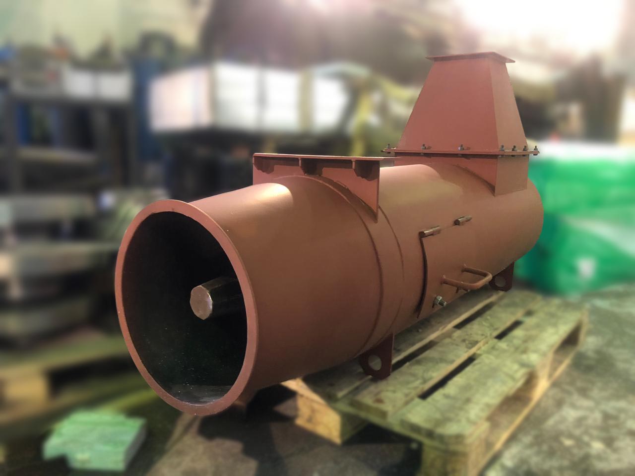 Горизонтальная компоновка позволяет интегрировать циклон непосредственно в магистральный воздуховод. Завихритель создает центробежный поток, который отбрасывает тяжелые искры и частицы к стенкам корпуса, где они гасятся и осаждаются. Дополнительные пластины-отбойники повышают эффективность сепарации. Конструкция является разборной для легкого обслуживания, а корпус с износостойким покрытием рассчитан на длительный срок службы в агрессивной среде.