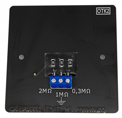 На тыльной стороне панели располагается клемма для подключения провода заземления, позволяющая выбрать сопротивление в цепи разряда при подключении. Рядом с ней – три планарных резистора, покрытые защитным полимерным слоем