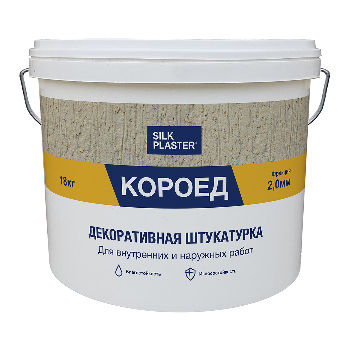 В зависимости от способа нанесения, позволяет создавать 4 различных вида фактуры готового покрытия: так называемые КОРОЕД «Ковер», «Барашек», «Дождик» и «Косой дождик».