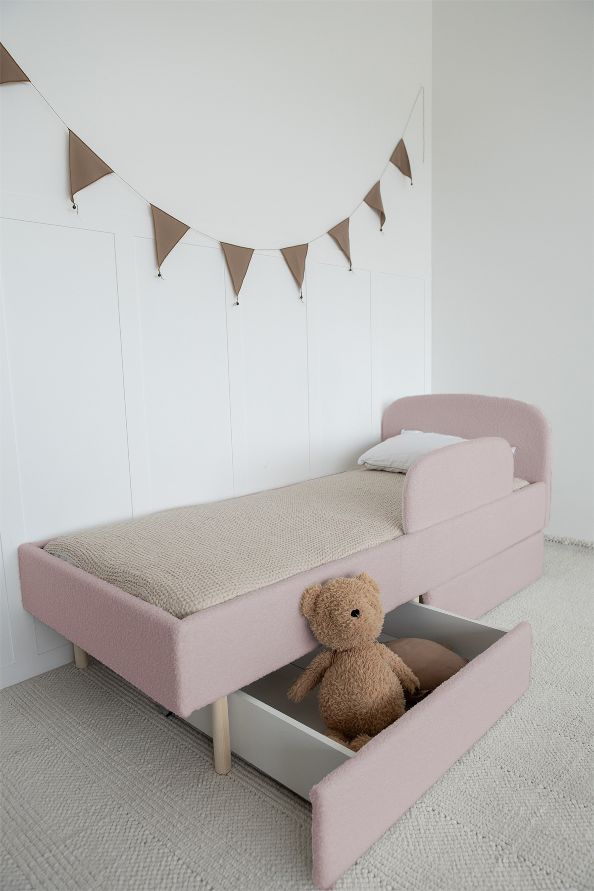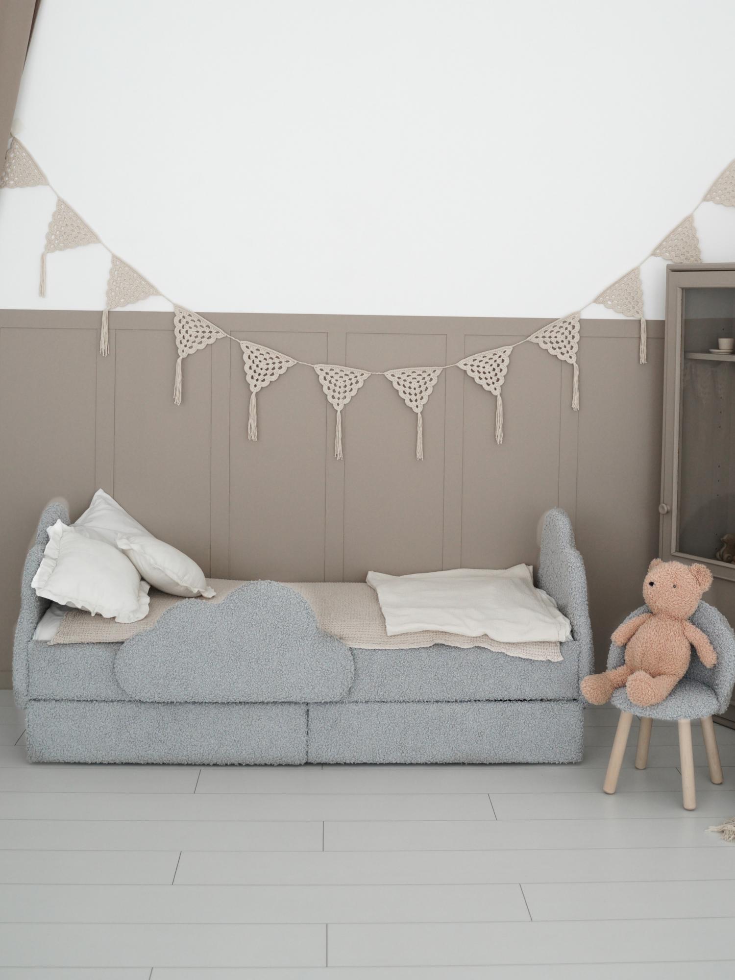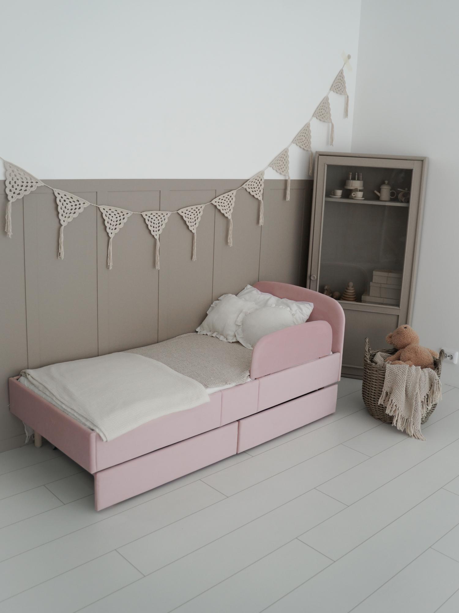 Представляем вашему вниманию детскую кроватку для малышей от 3 до 9 лет. Идеальное решение для комфортного сна вашего ребенка! Есть в размерах 160х70 и 160х80. Выполнение из материала букле и велюр. Крепкие ортопедические ламели кроватки выдерживают до 90 кг, обеспечивая надежность и долговечность конструкции. Кроватка выполнена из экологического материала, ножки для кровати выполнены из массива дерева березы.