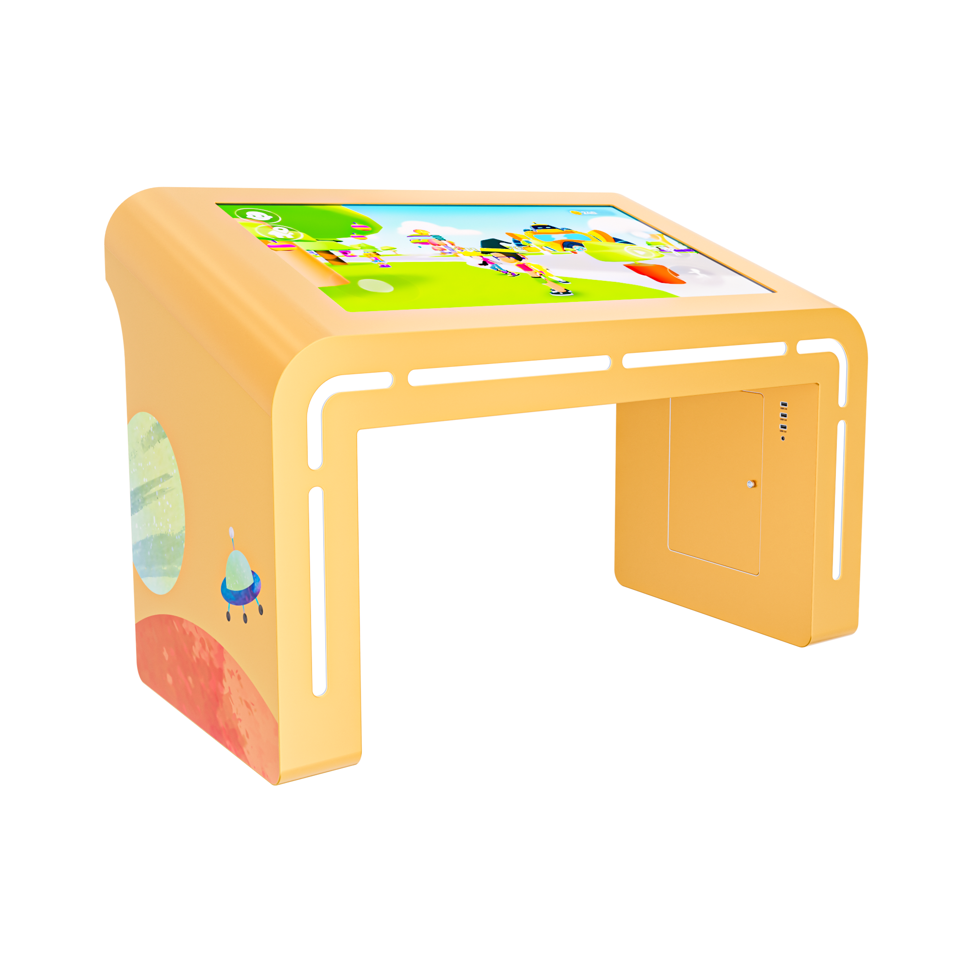 Не знаете как занять своих детей, чтоб это было весело и познавательно? Нами был создан детский интерактивный стол Leo, который позволяет сделать процесс обучения ребенка, в формате игры, увлекательным и запоминающимся. Травмобезопасный корпус с закругленными углами, мультитач-система, светодиодная подсветка, а также возможность брендирования стола под разные мультфильмы — настоящая находка для родителей маленьких детей.