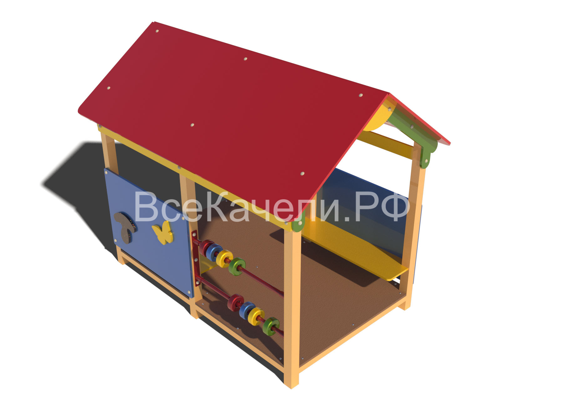Детский просторный домик для детской площадки. В нем можно укрыться от непогоды или от палящих лучей солнца. Наша компания уделяет огромное внимание безопасности детей, поэтому все детали тщательно отшлифованы и покрыты качественной, безопасной для окружающих краской.