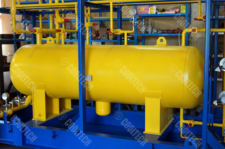 Дренажный ресивер необходим для слива жидкого хладагента из аппаратов и трубопроводов холодильной установки как при эксплуатации (например, при оттаивании испарителей), так и перед ремонтом