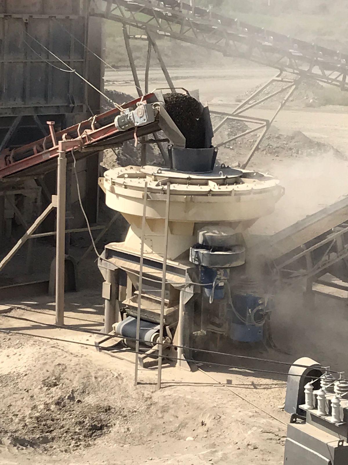 Модифицированная модель центробежной дробилки с двумя боковыми двигателями и увеличенной мощностью. Данная модель разработана для измельчения рудного и нерудного сырья с фракционным составом до 70 мм (не более). Устройство предназначено для сухой переработки невзыровоопасных материалов.