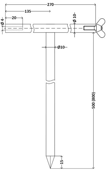 Электрод заземляющий измерительный предназначен для электрического соединения измерительных приборов с землей и может использоваться при измерении сопротивления заземления различными методами, измерении разности потенциалов при протекании токов через землю, для подключения генераторов трассоискателей.