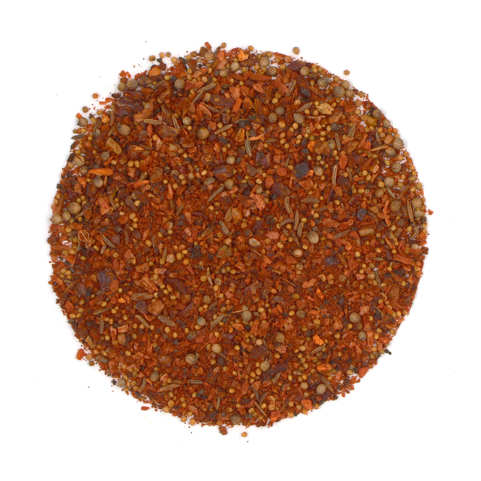 Состав: горчичное семя желтое, перец черный дробленый,лук гранулы,паприка красная хлопья,глутамат натрия(Е621),тмин семя,кориандр зерно, перец красный острый молотый.