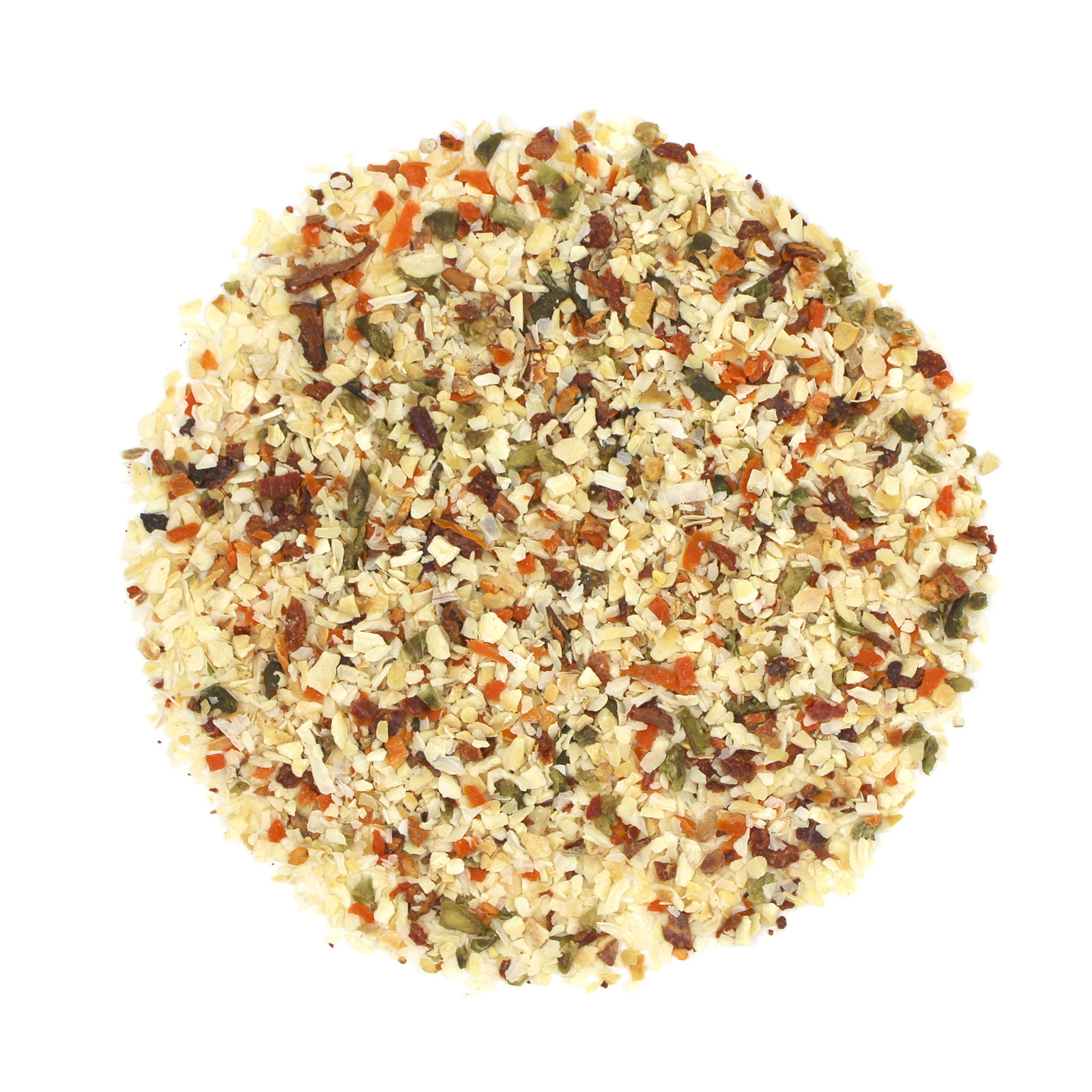 Состав: чеснок гранулы, лук гранулы, паприка красная хлопья, паприка зелёная хлопья, морковь.