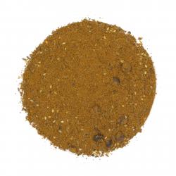 Состав: кориандр молотый, куркума молотая, паприка красная молотая, кумин семя,чеснок гранулы, барбарис черный,кунжутное семя белое, перец черный дробленый,майоран,перец красный острый молотый, лавровый лист молотый.