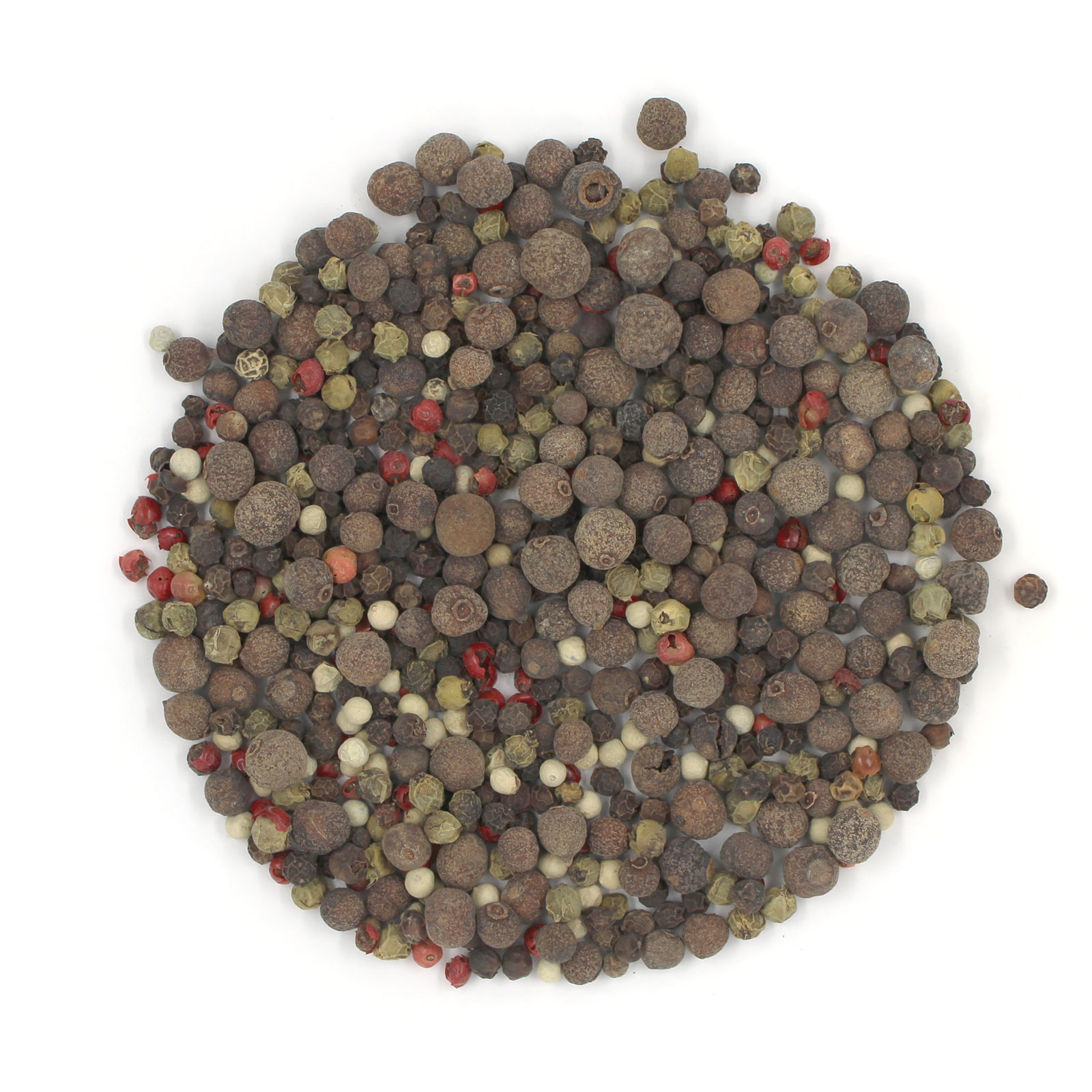 Состав: перец черный горошек, перец душистый горошек, перец белый горошек, перец зеленый горошек, перец розовый горошек.