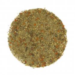 Состав: соль,паприка зеленая хлопья,лук гранулы, кориандр молотый,куркума молотая,морковь,сахар, перец красный острый молотый,базилик лист,петрушка зелень,укроп зелень,глутамат натрия (Е621),паприка красная хлопья,томатные хлопья,чеснок гранулы,пажитник молотый,горчичное семя желтое,лук порей.