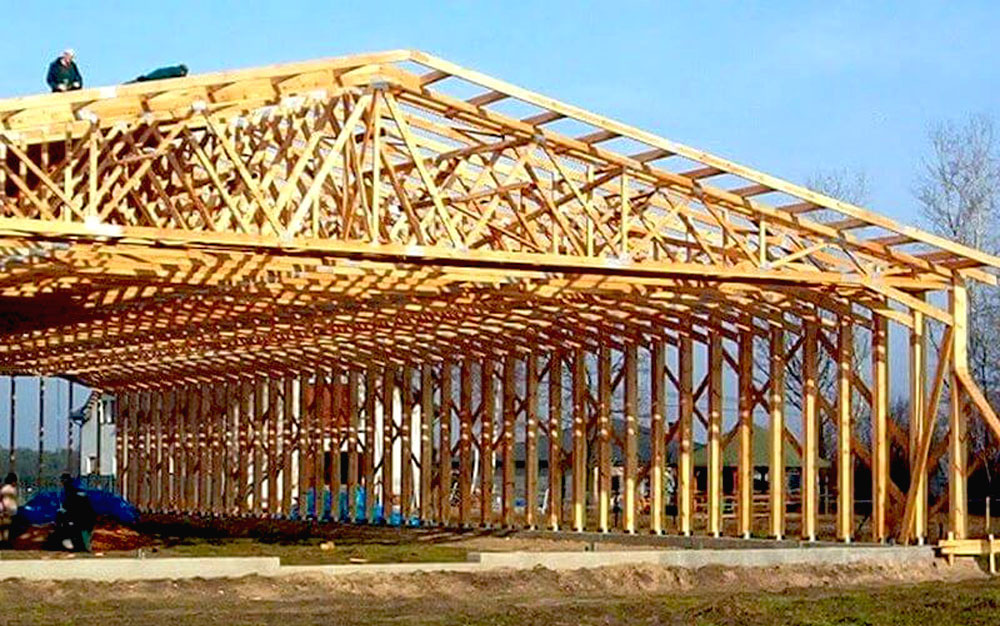 Стропильные конструкции из дерева на МЗП до 36 метров.