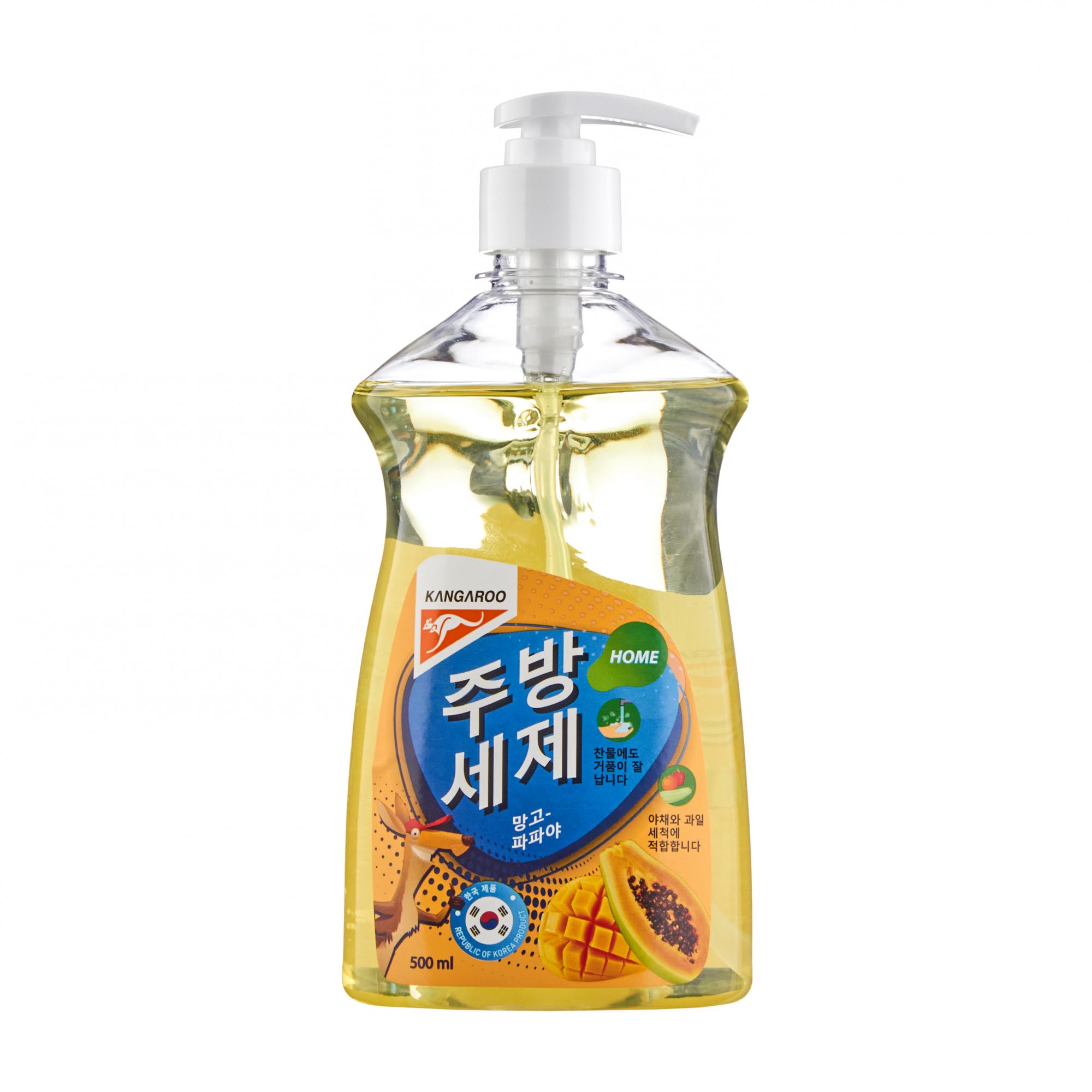 Средство для мытья посуды Kangaroo Home создает густую пену и отлично справляется с различными загрязнениями, устраняя жир и запахи с пластиковых контейнеров, стеклянных тарелок, кастрюль, сковородок, столовых приборов и другой посуды. Средство также подходит для мытья детской посуды, овощей и фруктов. При использовании средства Kangaroo Home, ваша посуда не нуждается в замачивании. Гель для посуды эффективен даже в холодной воде и полностью смывается, не оставляя мыльных следов и разводов на поверхности. Глицерин в составе средства для посуды защищает кожу рук от сухости и раздражения. Также моющее средство избавляет посуду от неприятных запахов и наполняет комнату ароматомманго и папайя, оставляя после себя ощущение свежести и чистоты. Дозатор флакона обеспечивает более экономичный расход и не требует переливания в специальную емкость – средство уже готово для использования.