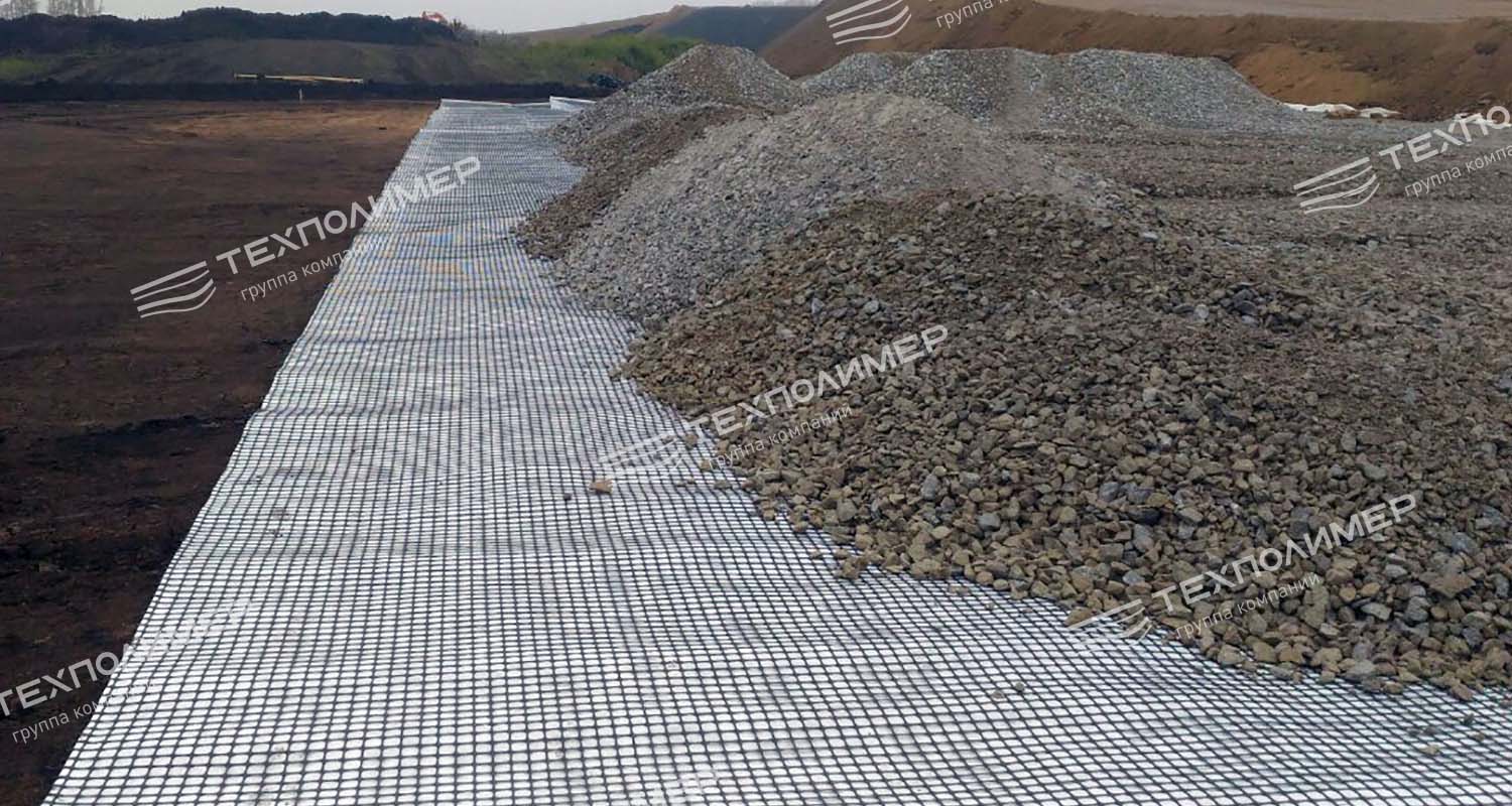 Основная задача заключается в равномерном распределении динамической нагрузки, что замедляет или предотвращает повреждение дорожного полотна. Еще одно полезное свойство материала — препятствие взаимопроникновению дискретных слоев дорожной одежды и обеспечение надежной заклинки щебня.
