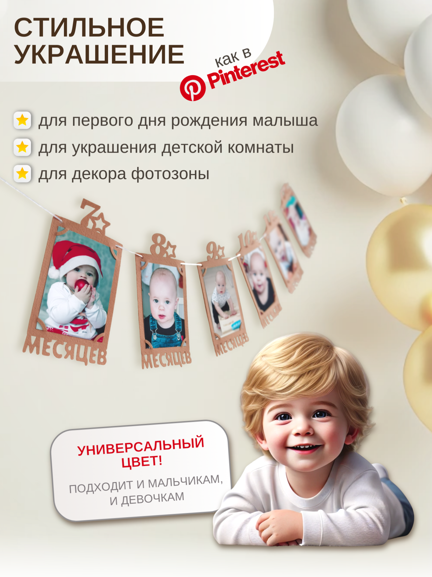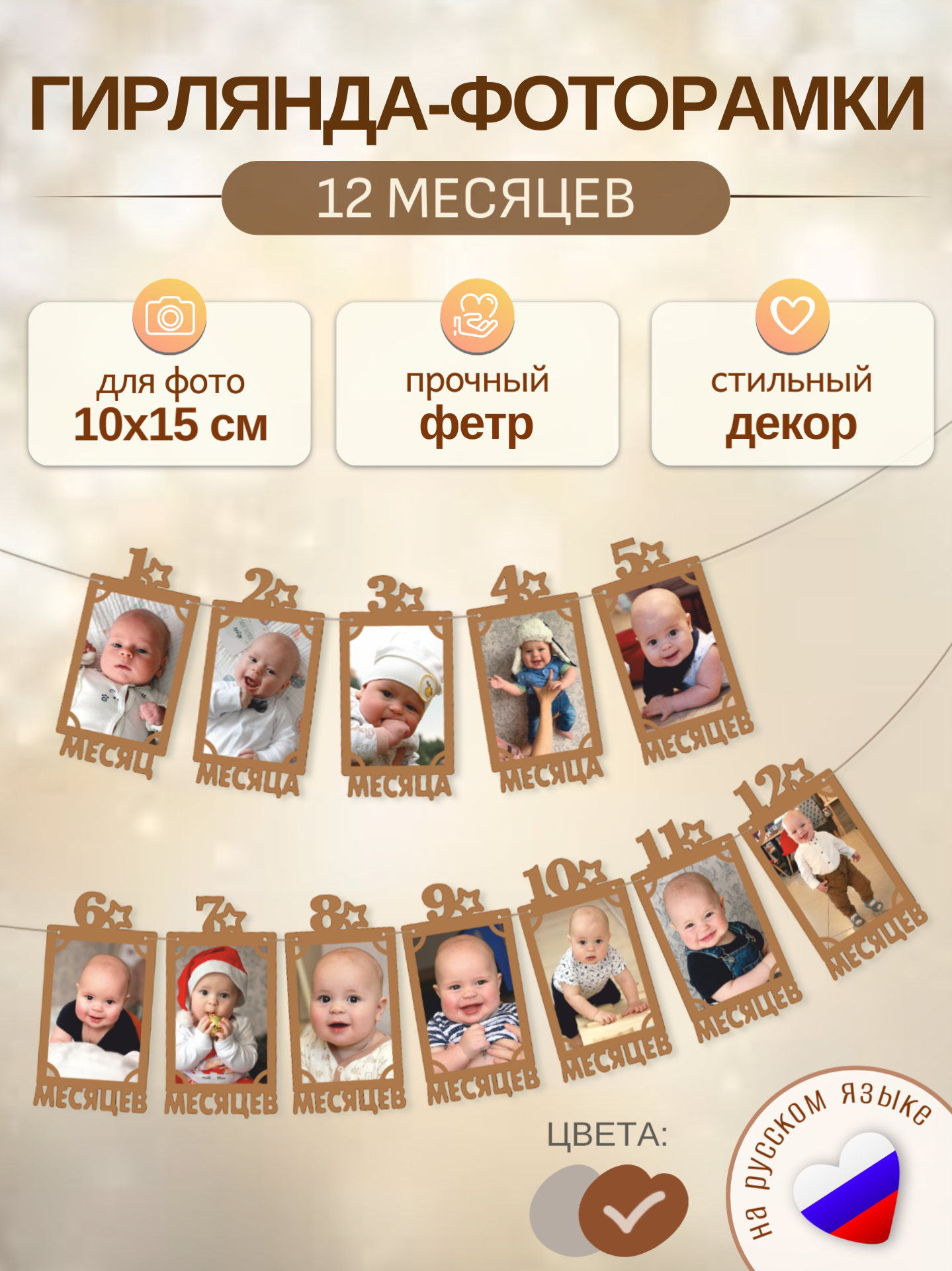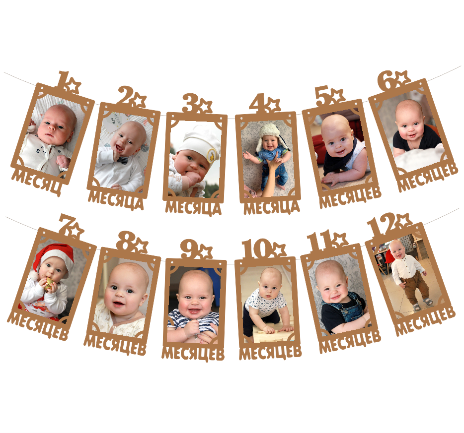 Гирлянда-растяжка с рамками для фото 12 месяцев – сохраните лучшие моменты первого года малыша!