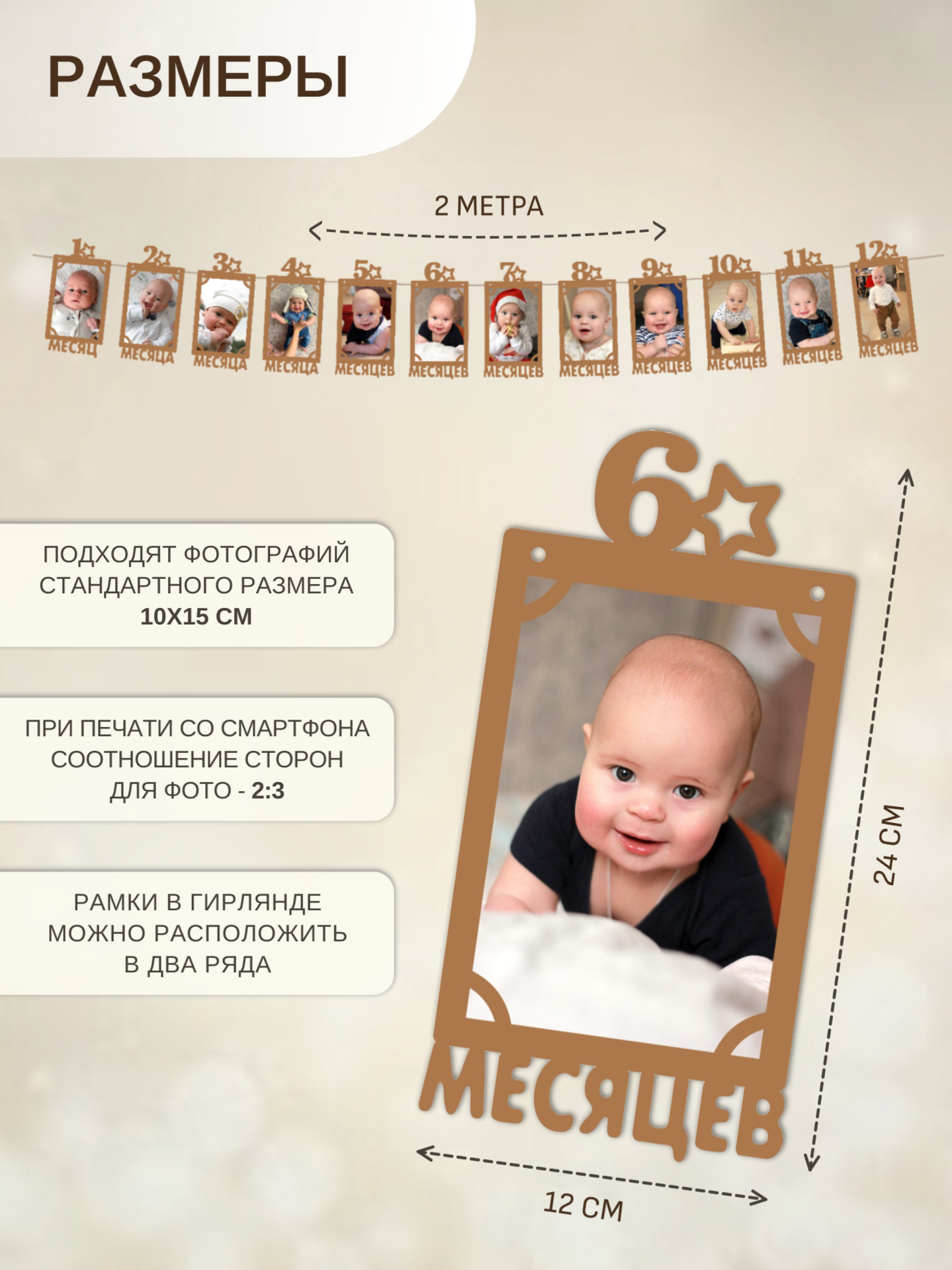 Размер фоторамочек: 12*24 см, подходит для фото размером 10*15 см.