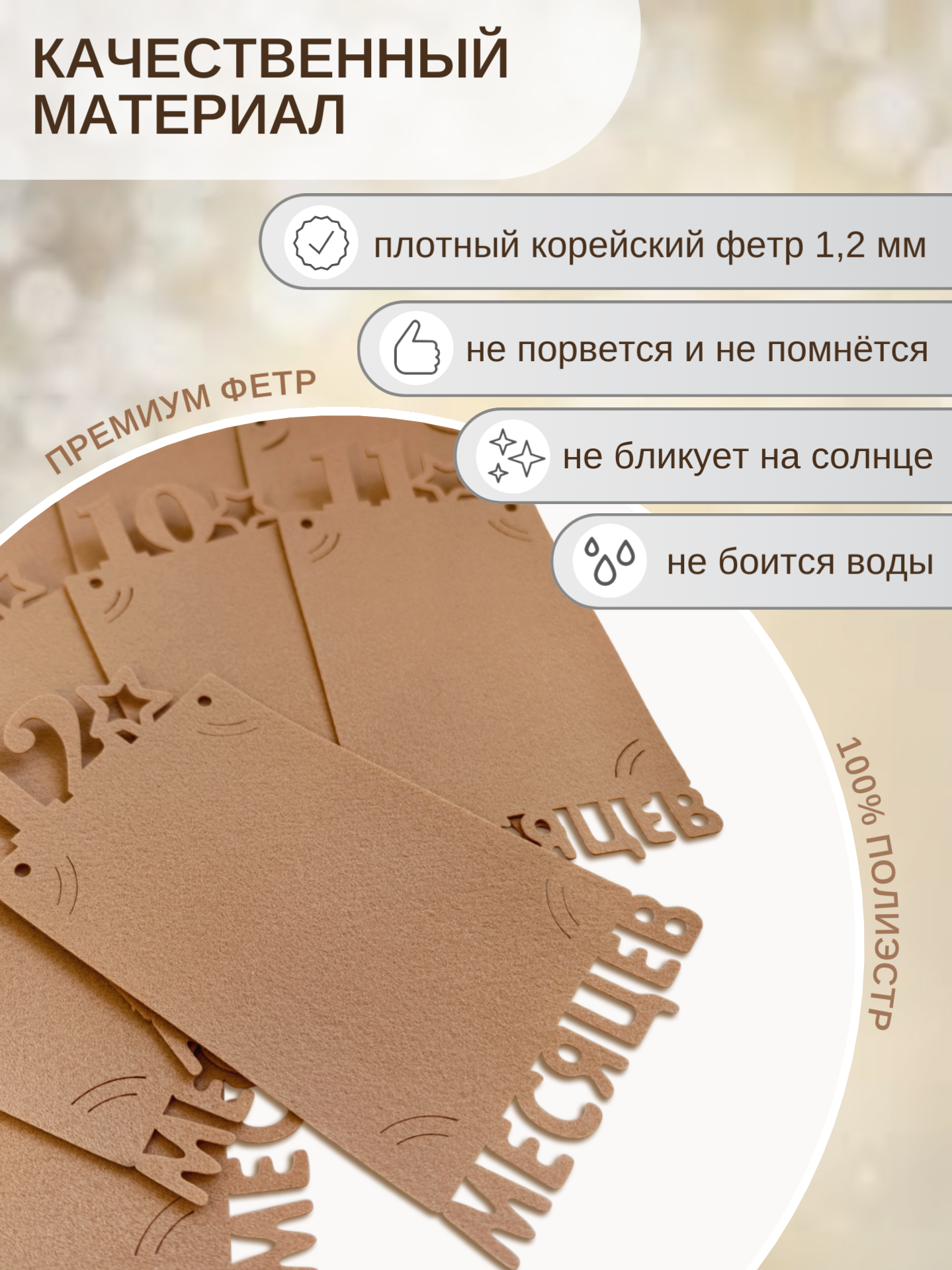 1. Качественный и долговечный материал – фетр не рвётся, не мнётся и сохраняет форму.