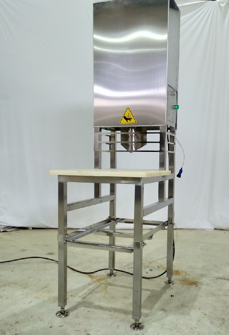 Продаём головоруб для отделения голов рыб величиной от 300 до 800 мм. V-образный нож гильотинного типа позволяет делать экономичный рез с минимумом отходов.