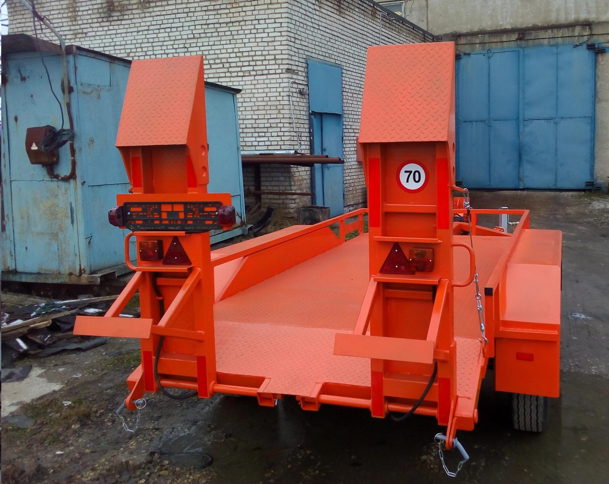 Прицеп штатно комплектуется: силовым ограждением грузовой платформы, проушинами для крепления груза, настил грузовой платформы - металл, двумя въездными аппарелями 450мм. с возможностью регулировки по ширине.