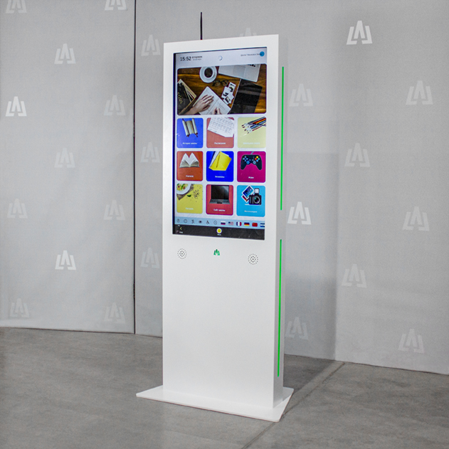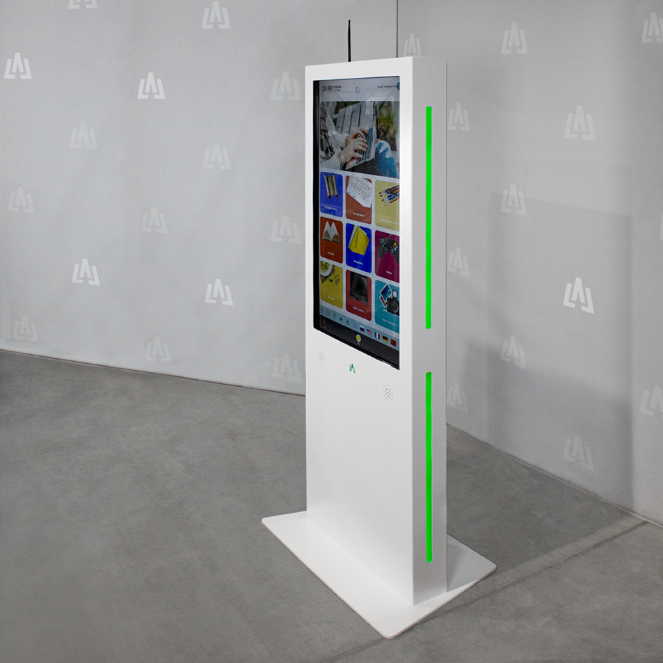 Сенсорная стойка LigaSmart IK 43 — интерьерное мультимедийное решение в антивандальном металлическом корпусе с возможностью брендирования в фирменных цветах вашей компании. Оборудование разработано как надежный помощник в целях навигации и демонстрации информации. Экран 43 дюйма является одним из самых популярных в линейке сенсорных стоек