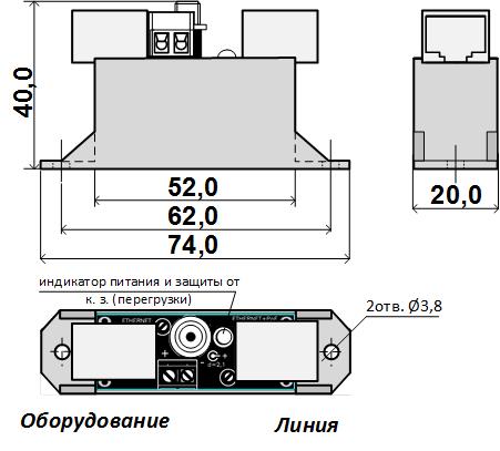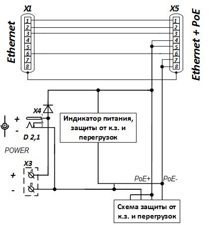 Особенности – питание DC 24-60 Вольт(Вход/выход), без дополнительного преобразования AC/DC; — для подачи питания может быть использован любой блок питания соответствующего напряжения и мощности; — встроенная схема защиты от токовых перегрузок в кабеле или нагрузке; — защита от переполюсовки; — подключение линейного кабеля и оборудования через розетки 8Р8С (RJ-45); — скорость передачи до 100 Мбит/с.