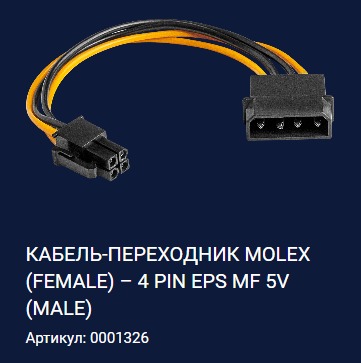 КАБЕЛЬ-ПЕРЕХОДНИК MOLEX (FEMALE) – 4 PIN EPS MF 5V (MALE)
