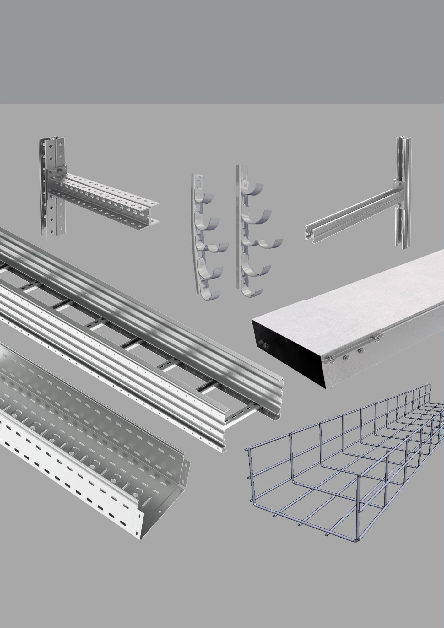 кабельрост; СТРАТ и П- профили; короба электротехнические; лотки монтажные, лестничные, проволочные; изделия для прокладки кабеля в метрополитене; профили и полосы монтажные, полки и стойки кабельные; прочие ЭМИ