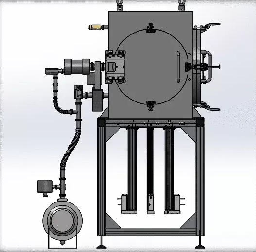 Вакуум в камере обеспечивается с помощью двухступенчатой системы откачки, состоящей из спирального форвакуумного насоса, турбомолекулярного насоса, клапанной развязки и системы гибких трубопроводов. Контроль давления в камере и в трубопроводах осуществляется с помощью датчиков Пирани.