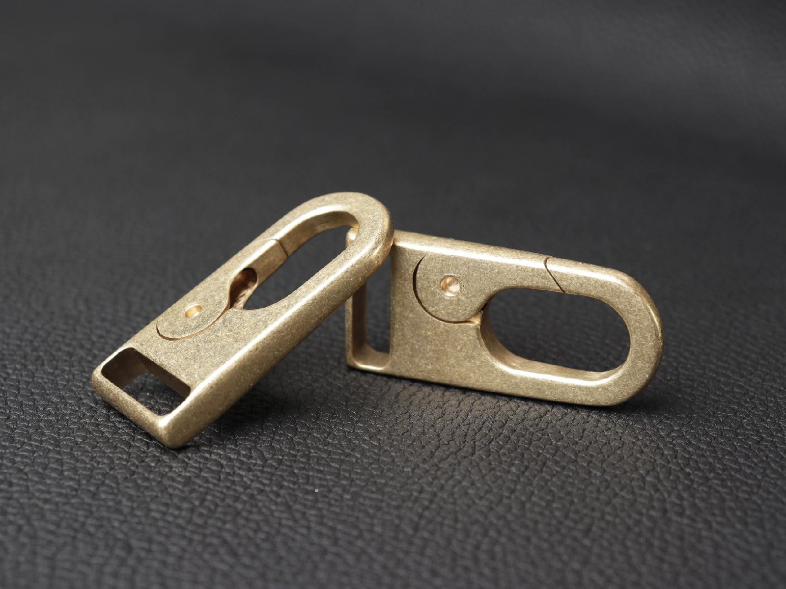 Карабин из латуни с сатиновой поверхностью под ремешок 20 мм, высота карабина 45 мм. Выполнен фрезеровкой.