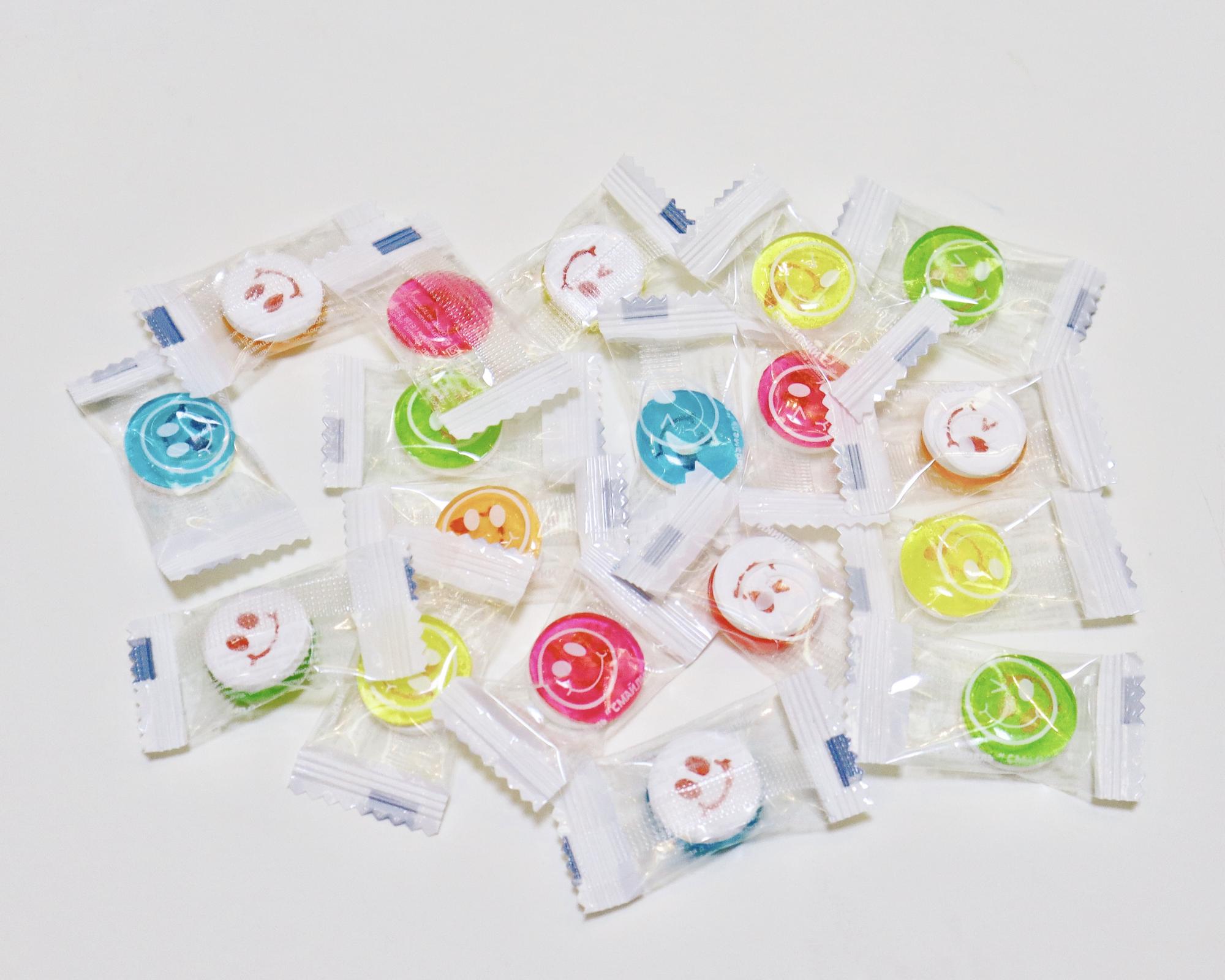 Конфета «Смайлики» — это вкусная карамель с четырьмя разными фруктовыми вкусами.