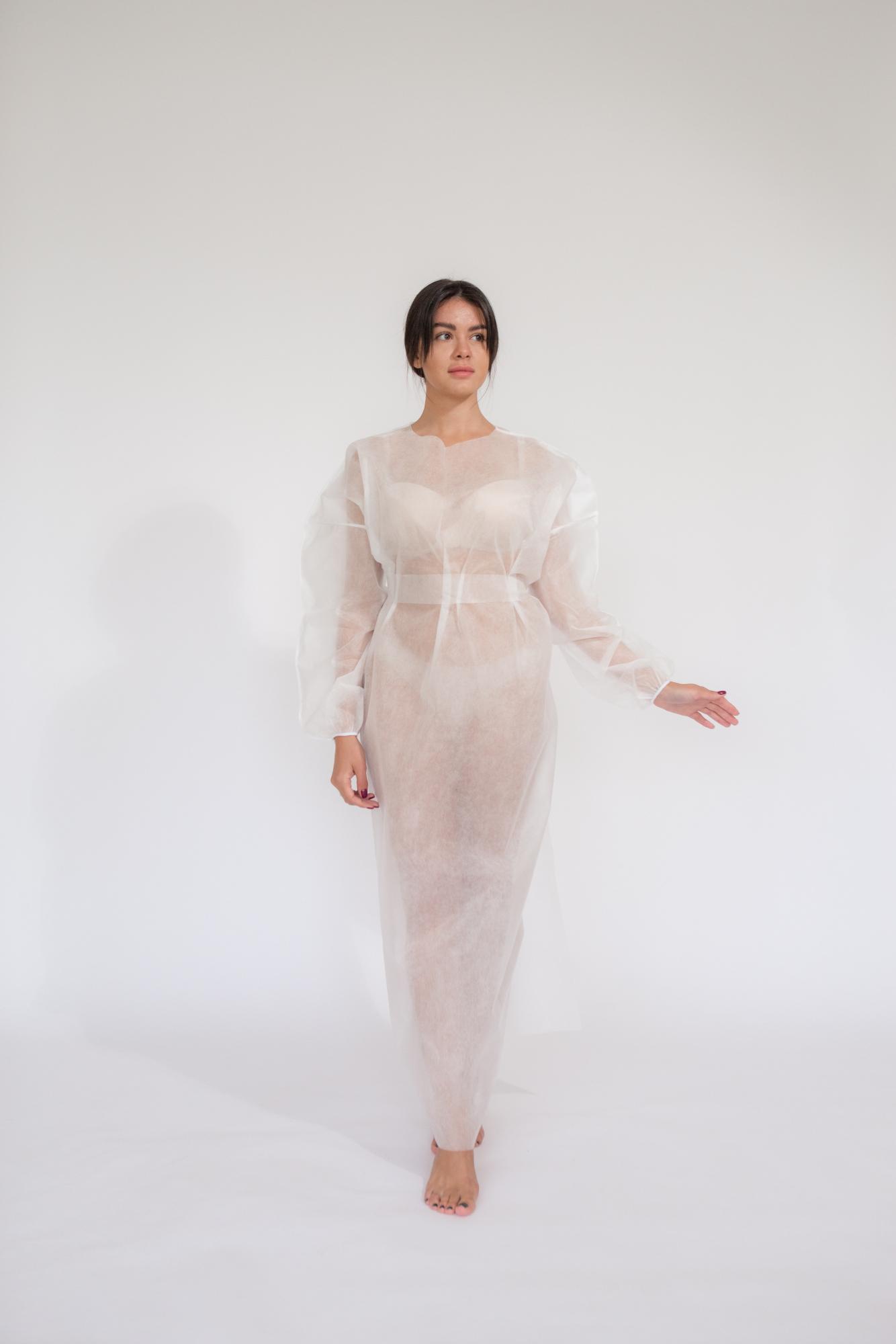 Одноразовый халат используется в качестве средства индивидуальной защиты в медицинских и химических лабораториях, больницах, клиниках и других медицинских учреждениях, а также при проведении косметологических процедур.