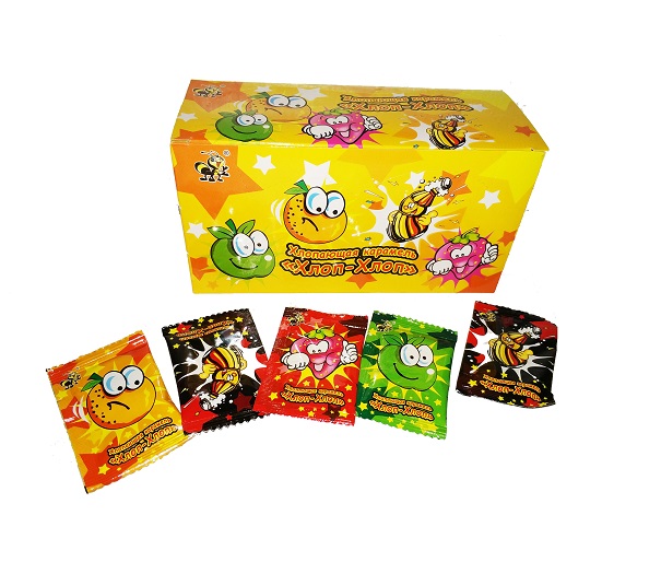 Взрывная карамель «Хлоп-Хлоп» — радость и веселье детворы обеспечено. Ведь это очень круто, когда во рту происходит взрыв вкуса!!!
