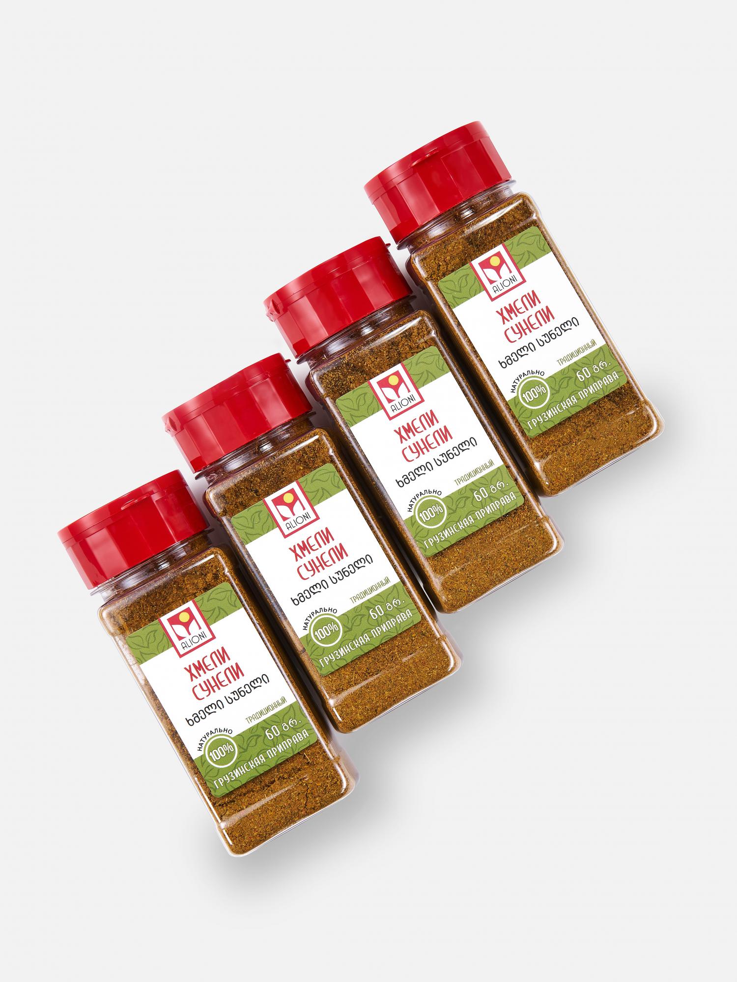 Состав: кориандр молотый, уцхо сунели молотый, перец красный молотый чили, чеснок сушеный гранулированный, шафран имеретинский молотый, соль поваренная пищевая молотая (сорт высший, помол №1), укроп сушеный, лавровый лист молотый.