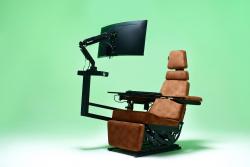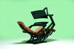 Киберстанция Robovoz - это эргономичное компьютерное кресло с интегрированным рабочим столом (для клавиатуры или ноутбука ?) и кронштейном для мониторов.