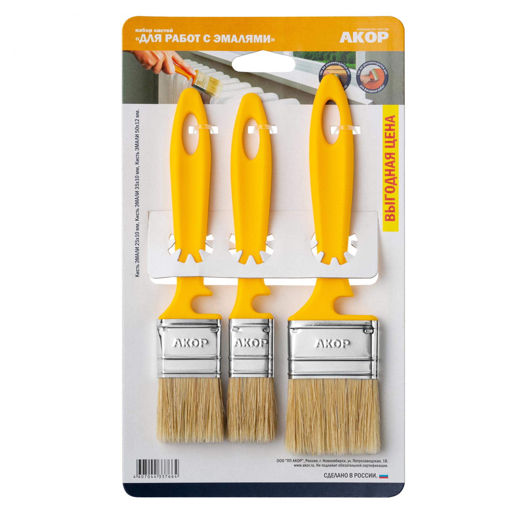 Набор плоских кистей для эмалей серии «Эксперт». Включает в себя кисти трех размеров: 25х10 мм, 35х10 мм и 50х12 мм.