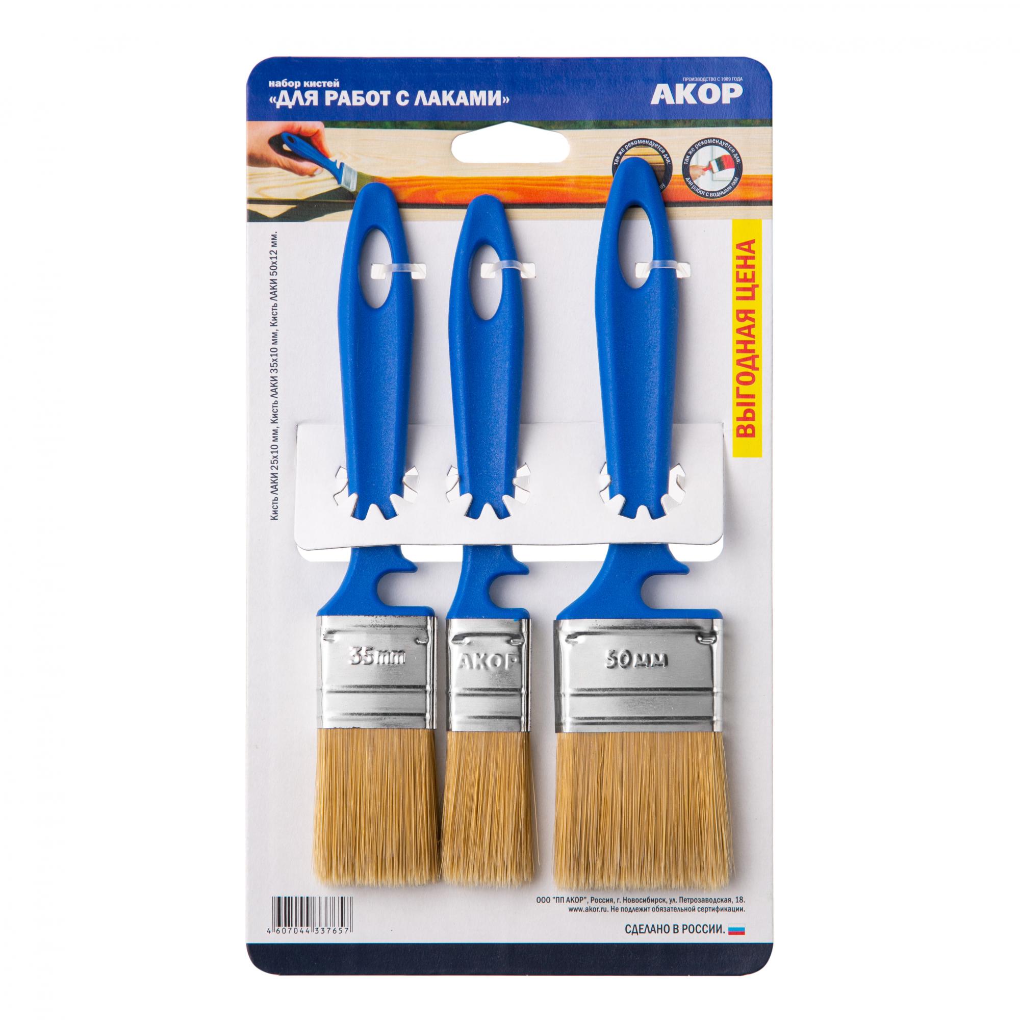 Набор плоских кистей для лаков серии «Эксперт». Включает в себя кисти трех размеров: 25х10 мм, 35х10 мм и 50х12 мм.