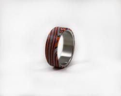 Сочетание редких материалов в классической форме делают это кольцо уникальным. Дизайн кольца подходит для него и для нее. Титан - гипоаллергенный материал, идеальный выбор для людей с чувствительной кожей.