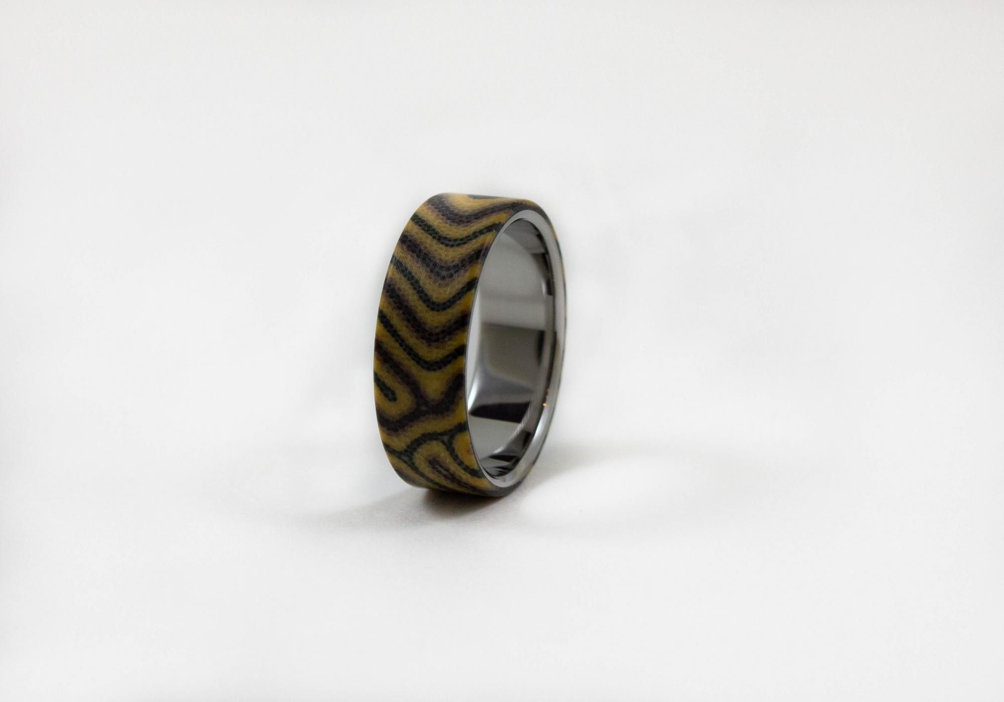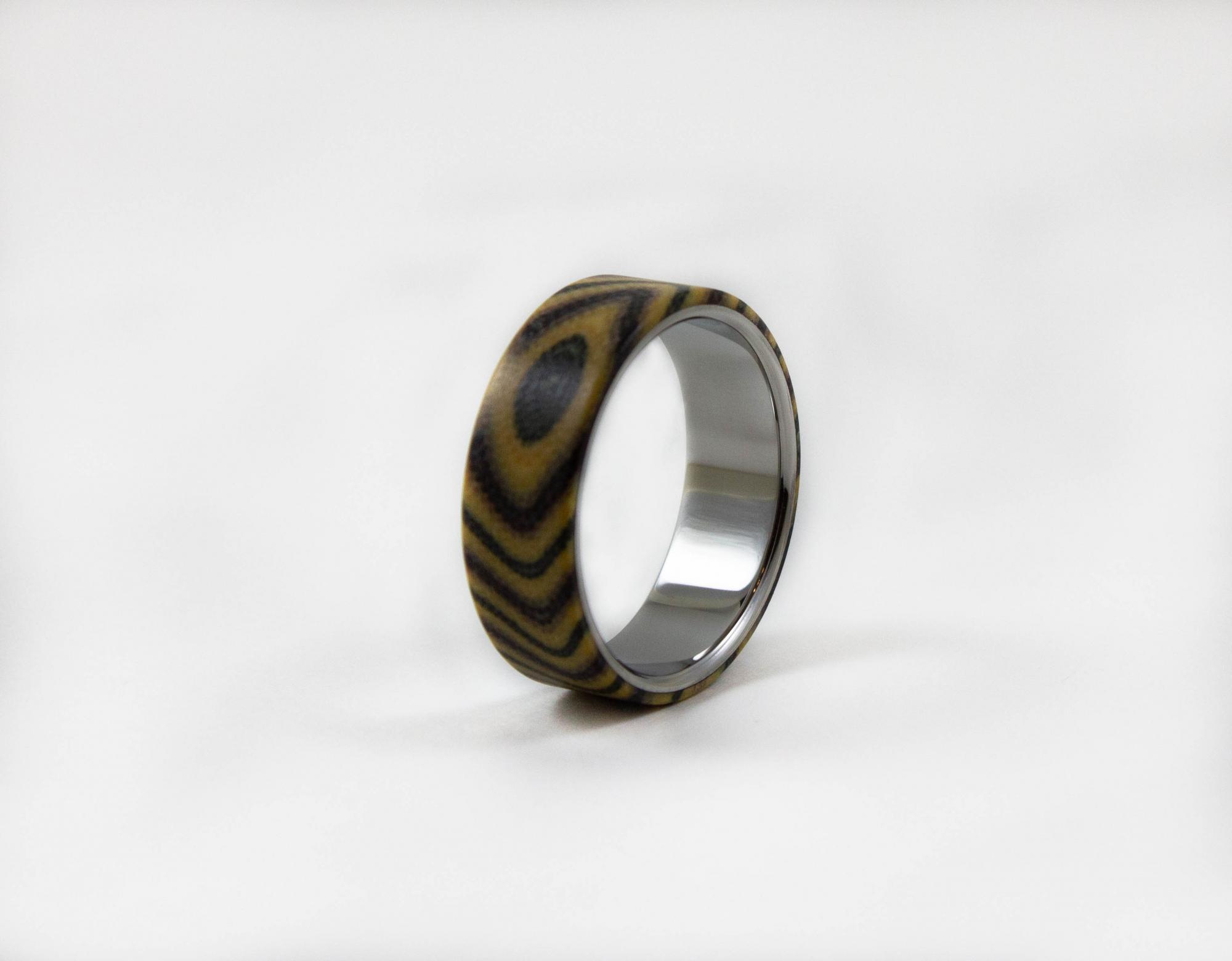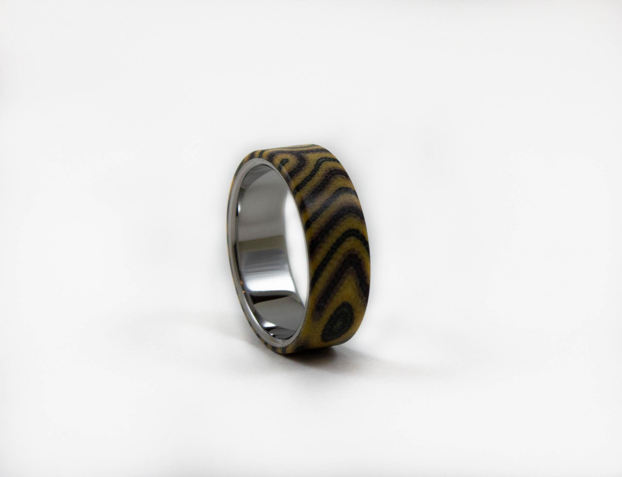 Сочетание редких материалов в классической форме делают это кольцо уникальным. Дизайн кольца подходит для него и для нее. Титан - гипоаллергенный материал, идеальный выбор для людей с чувствительной кожей.