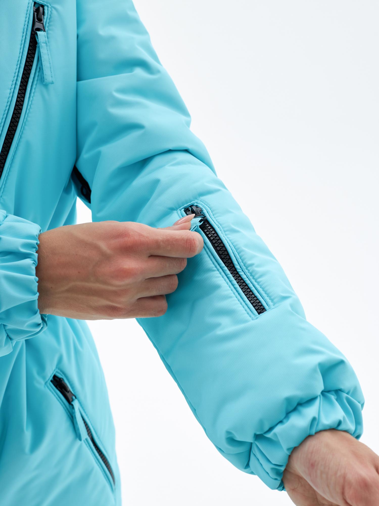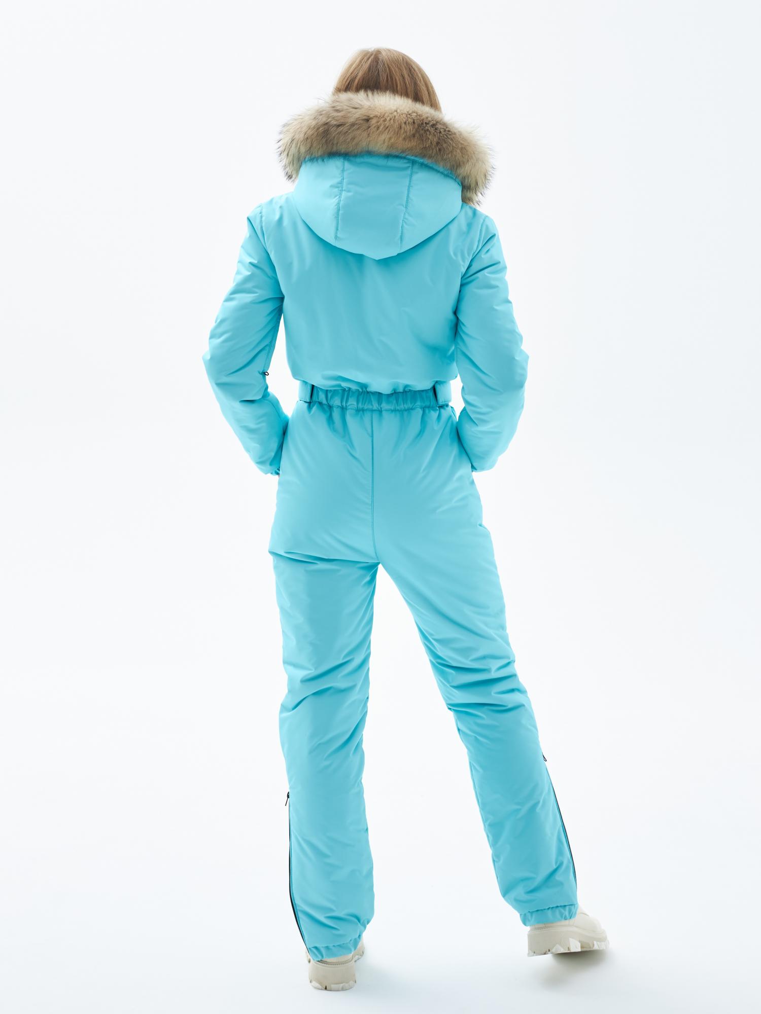 Комбинезон голубого цвета, изготовлен из мембранной ткани, имеющей влаго- и ветрозащитную пропитки, утеплен мягким высокотехнологичным и гипоаллергенным утеплителем Слайтекс, плотностью 200 гр.