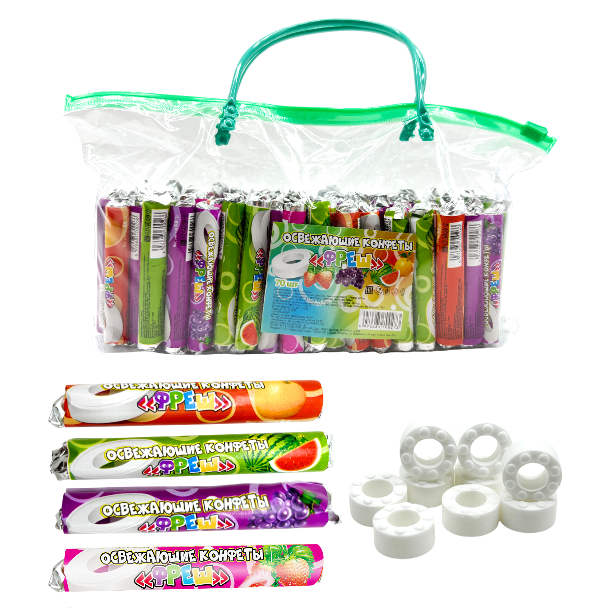 Конфеты освежающее «ФРЕШ» — это вкусное драже со вкусом апельсина, лимона, клубники, вишни, мяты, ментола. Конфеты обладают приятным освежающим вкусом.