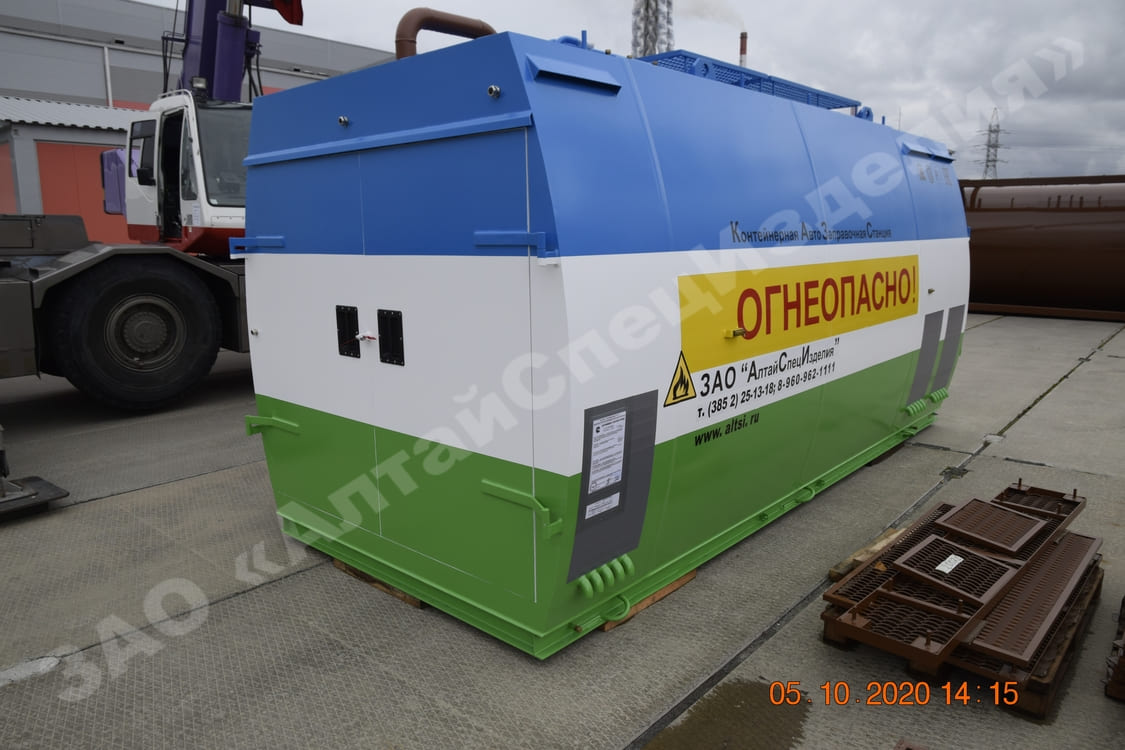 Десятикубовая КАЗС прекрасно подходит и для собственного снабжения производства топливом, и для заправки личного транспорта. Разработана с учетом требований НПБ 111-98* "Автозаправочные станции. Требования пожарной безопасности", СП 156.13130.2014, ПУЭ изд. 7, НПБ 88-2001.