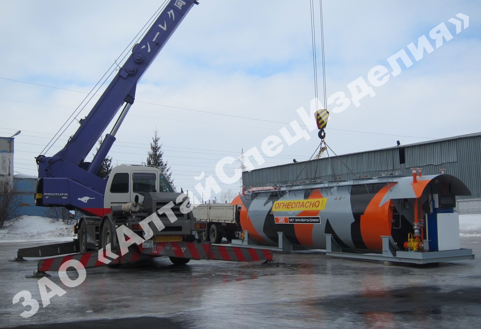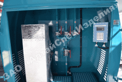 "Резервуар КАЗС двустенный трёхкамерный (согласно НПБ 111-98*, пункт 11, для АЗС с надземными резервуарами емкость резервуаров или камер для многокамерного резервуара с двойными перегородками между стенками не должна превышать 10 м3 при размещении на территории населенных пунктов). Климатическое исполнение контейнерной автозаправочной станции – УХЛ1 по ГОСТ 15150-69 для интервала температур от +50oС до - 60oС.