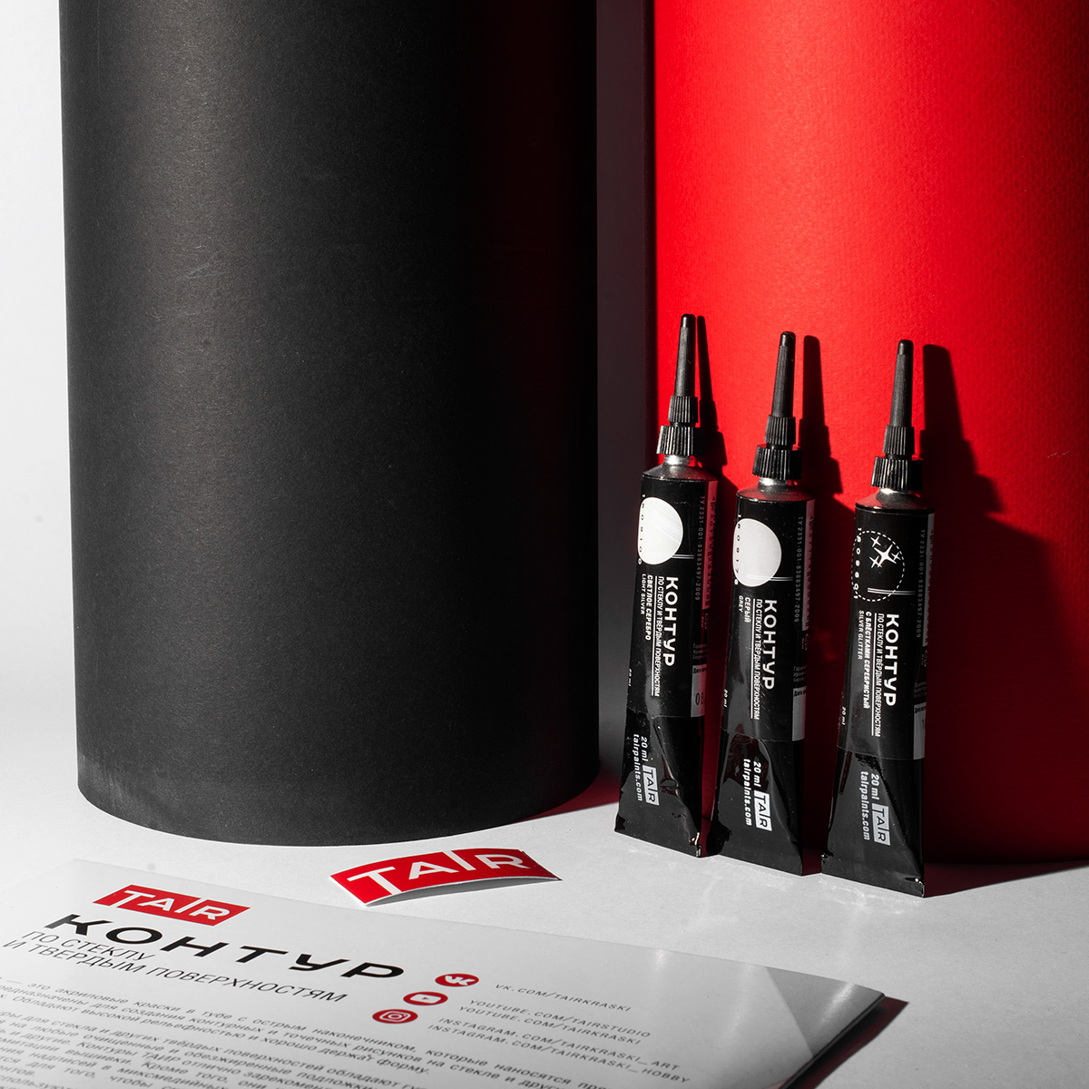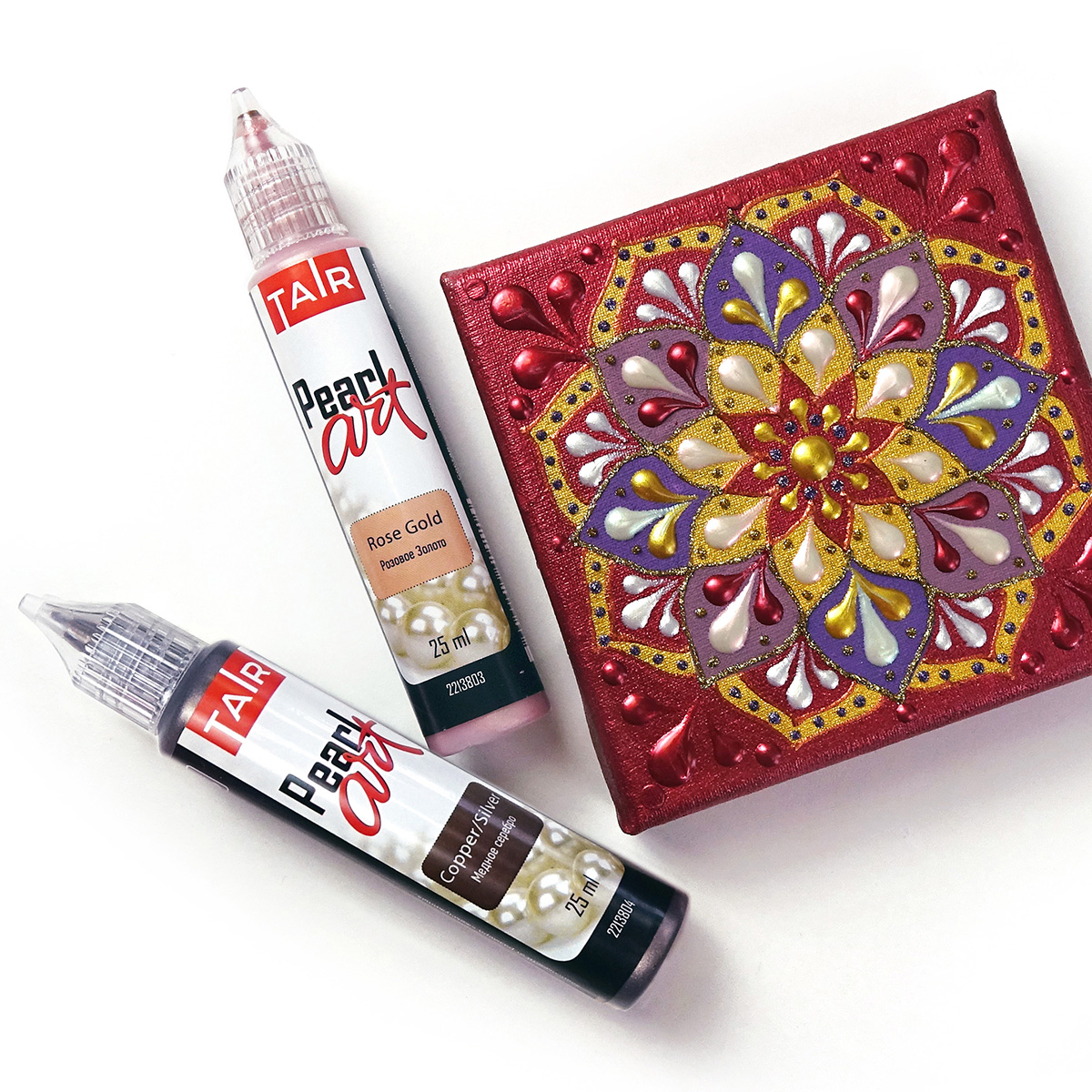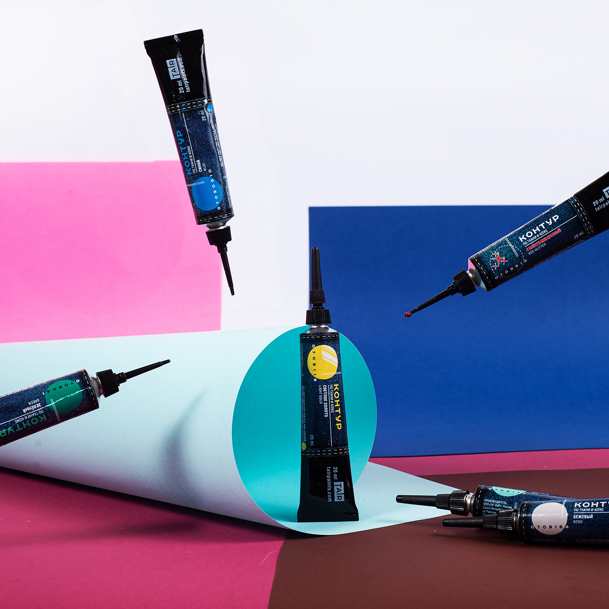 Контуры ТАИР — это акриловые краски в тубе с острым наконечником, которые наносятся прямо из тюбика. Предназначены для создания контурных и точечных рисунков на стекле, ткани и других поверхностях. Обладают высокой рельефностью и хорошо держат форму.