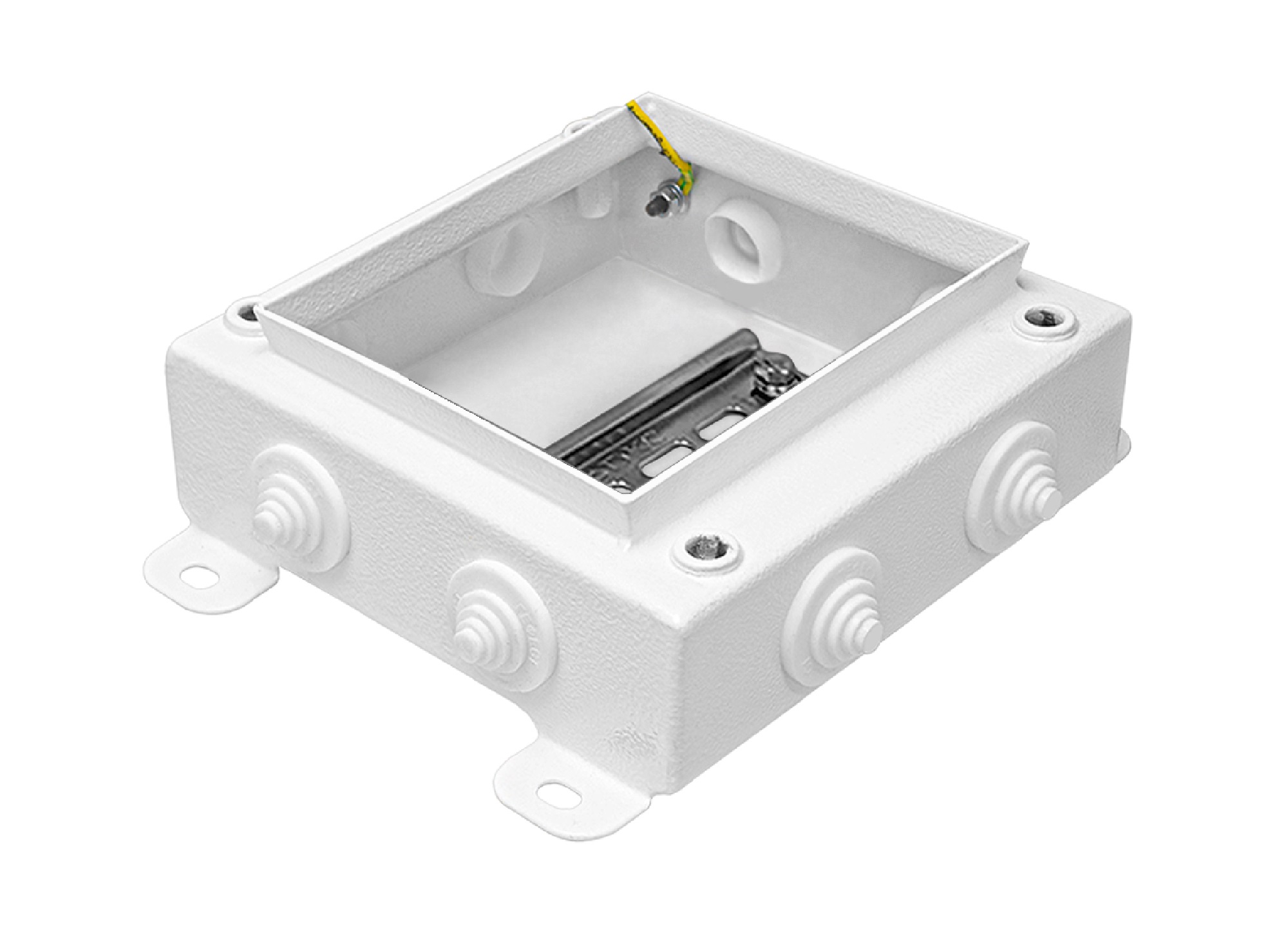Корпус изготовлен из листовой конструкционной стали Ст3 толщиной 1,2 мм, имеет защитное оцинкованное покрытие и окрашен полимерной краской в белый цвет RAL 9016. За счет гальванической обработки и полимерного покрытия он имеет двойную защиту от коррозии. Элементы крепления и соединений также имеют гальваническое антикоррозионное покрытие. Плотность прилегания крышки к корпусу обеспечивается силиконовой прокладкой.