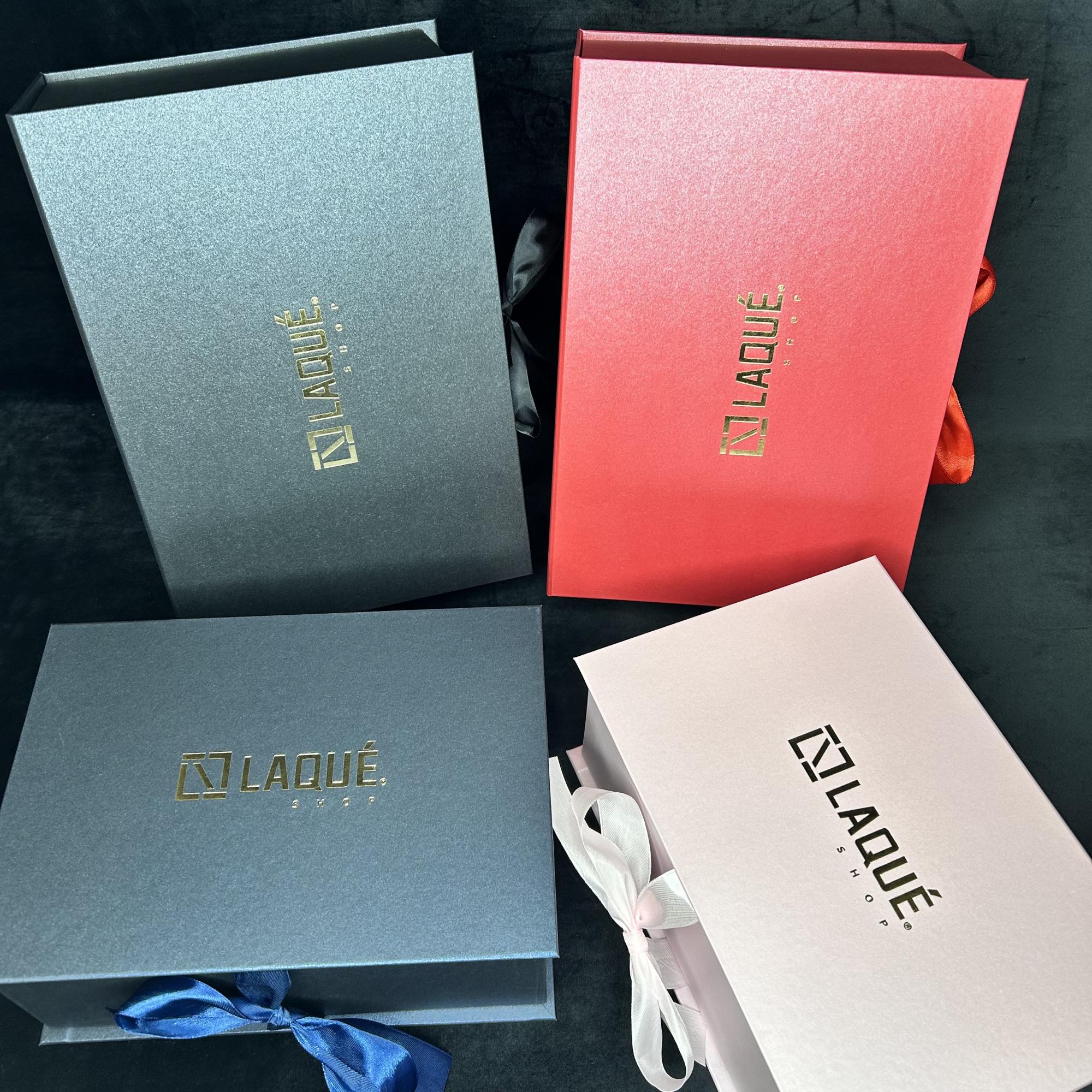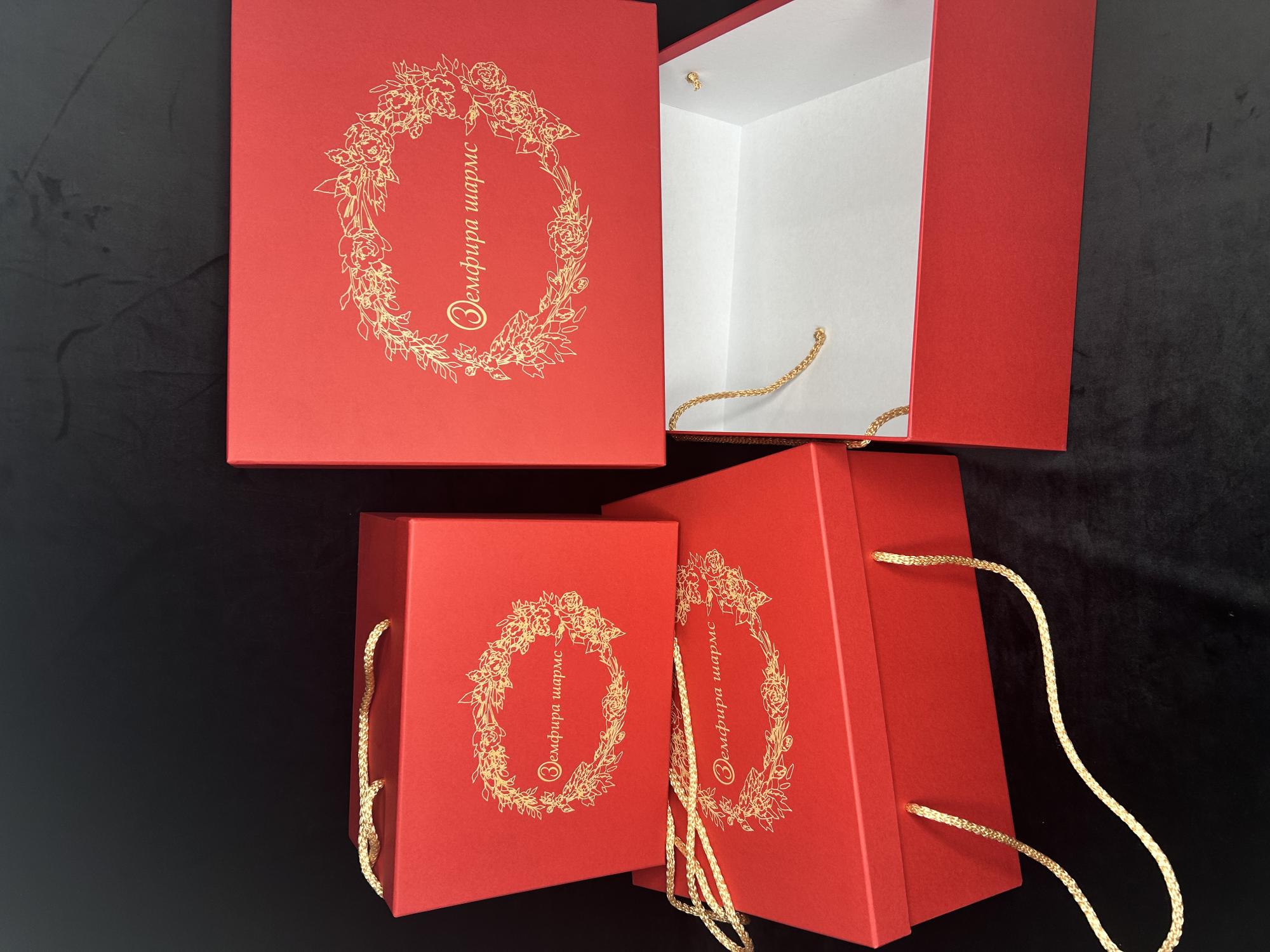 Печать логотипа, ложемент, брендированная лента- все это можно заказать у нас в дополнение к коробкам.